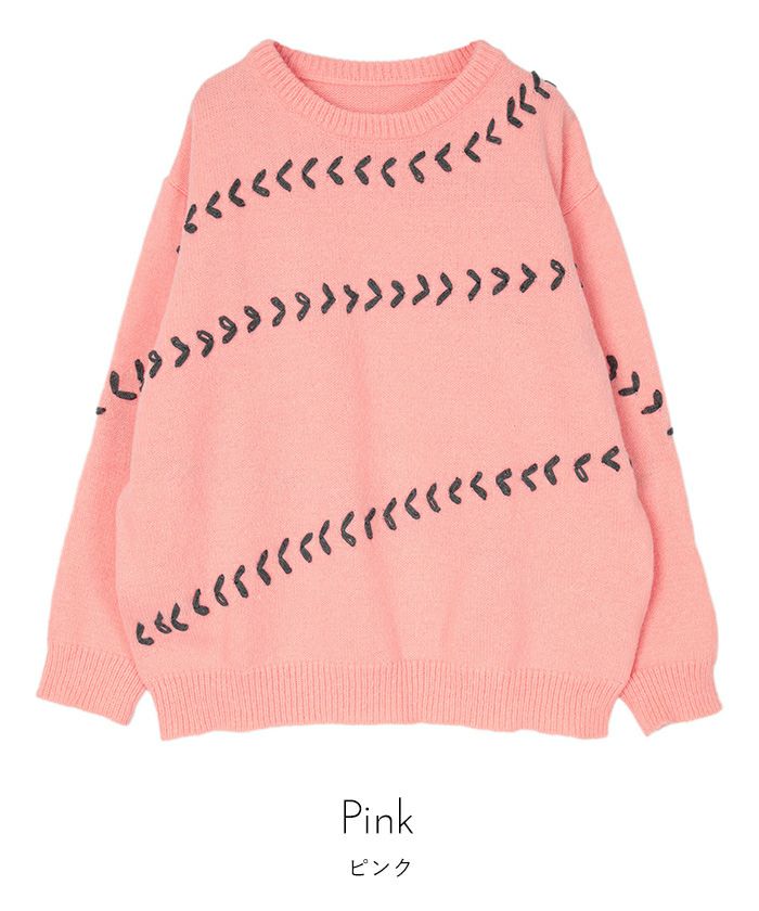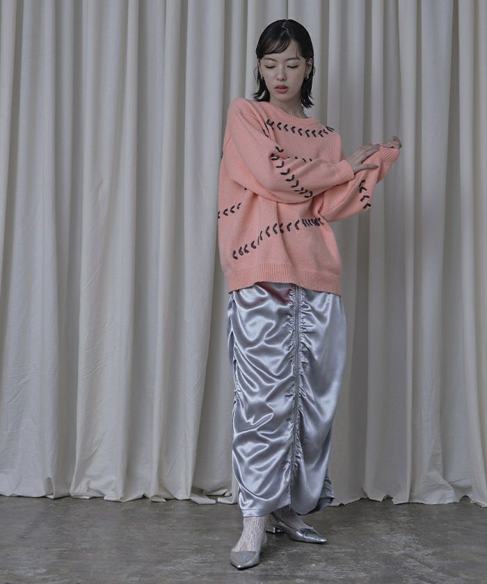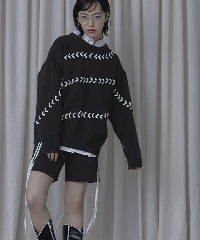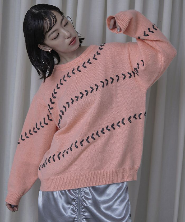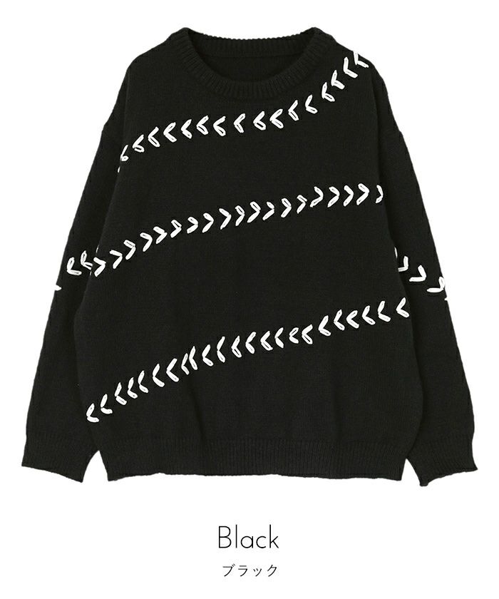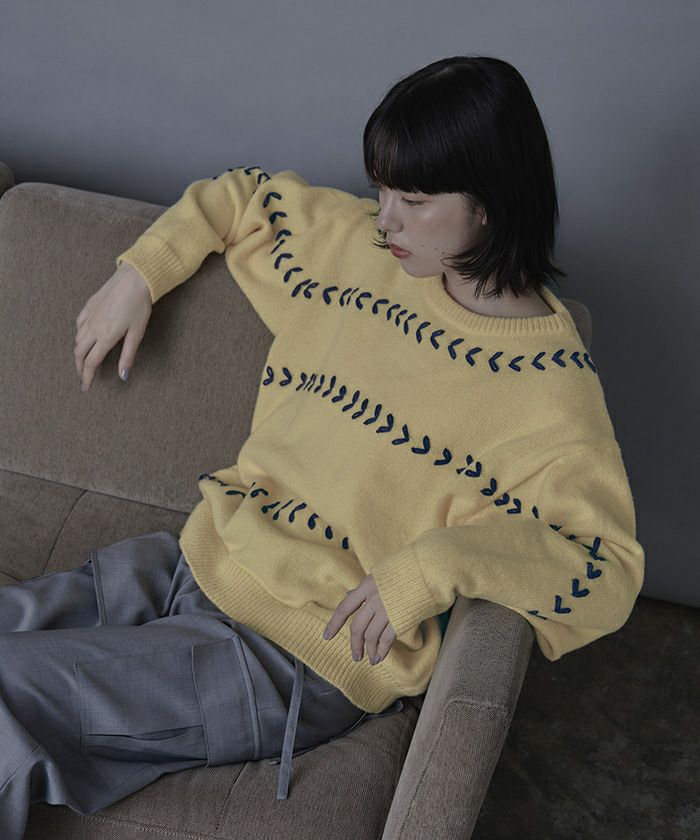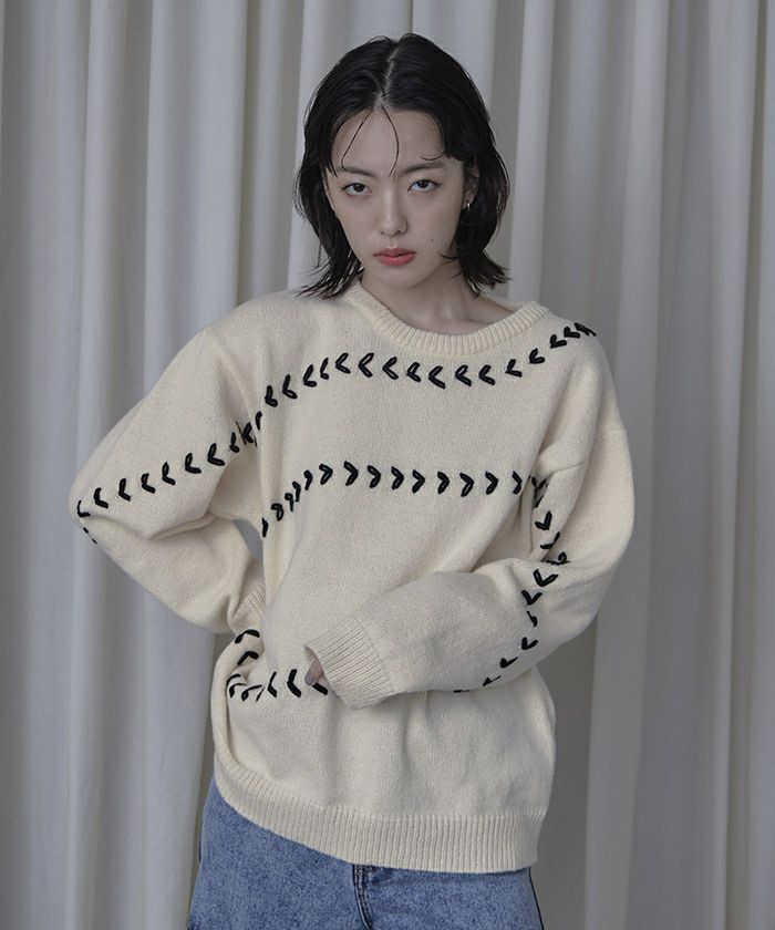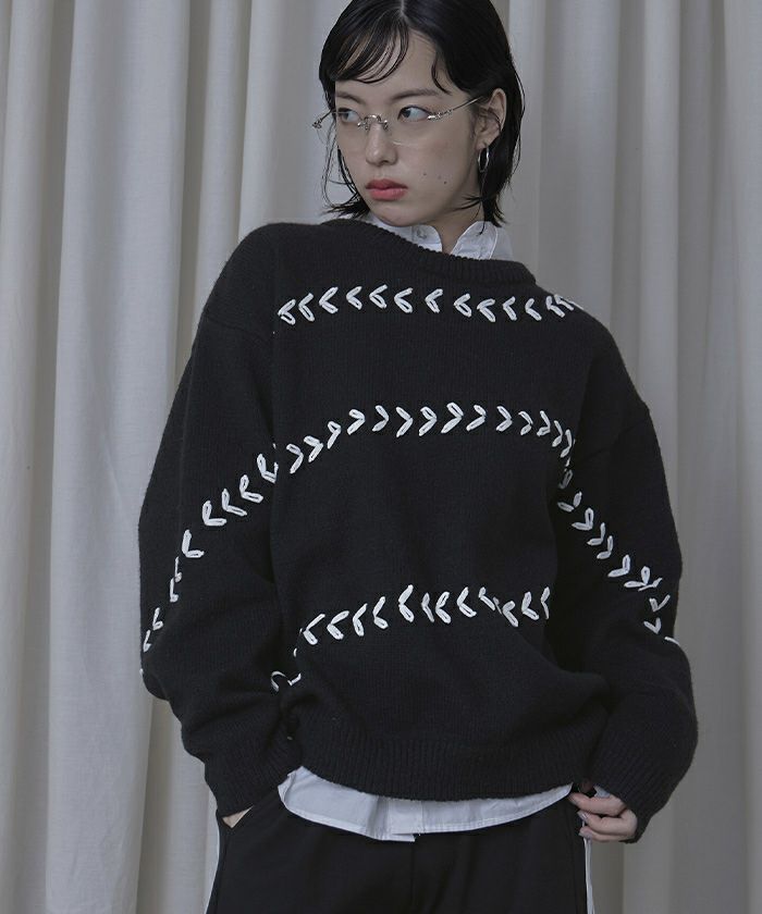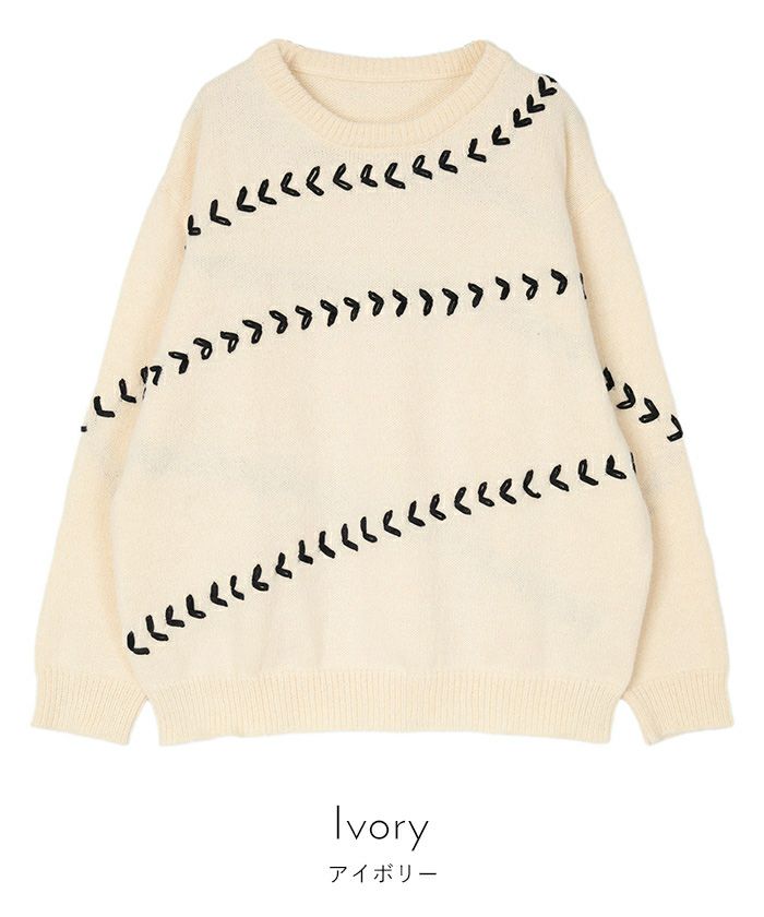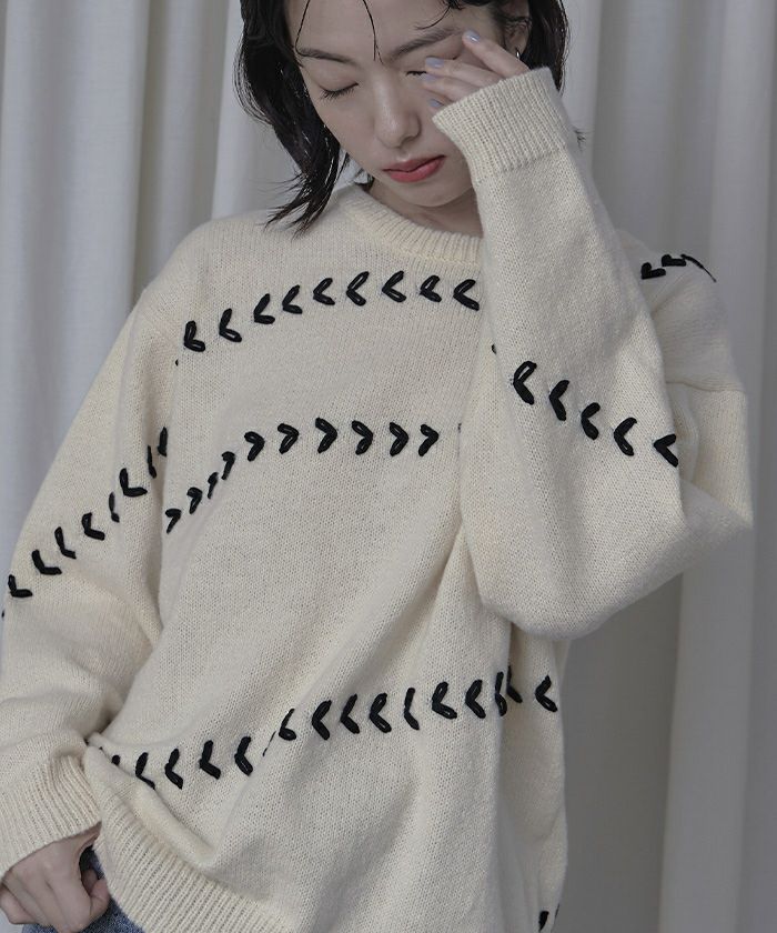 アシンメトリーステッチオーバーサイズニット【miette ミエット】