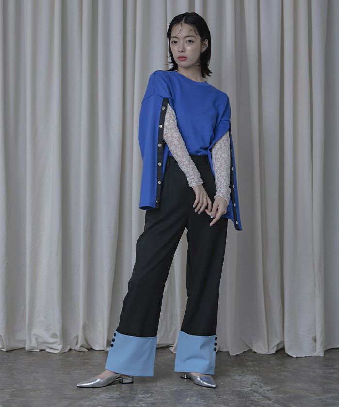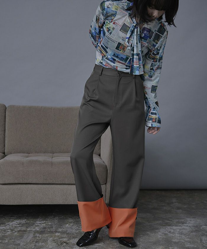 配色ロールアップワイドパンツ【miette ミエット】