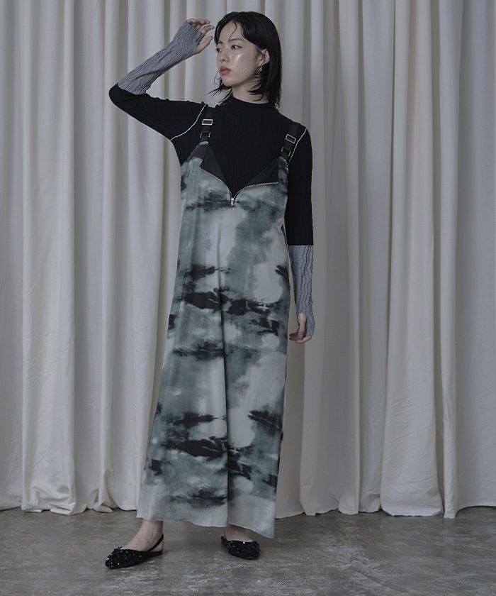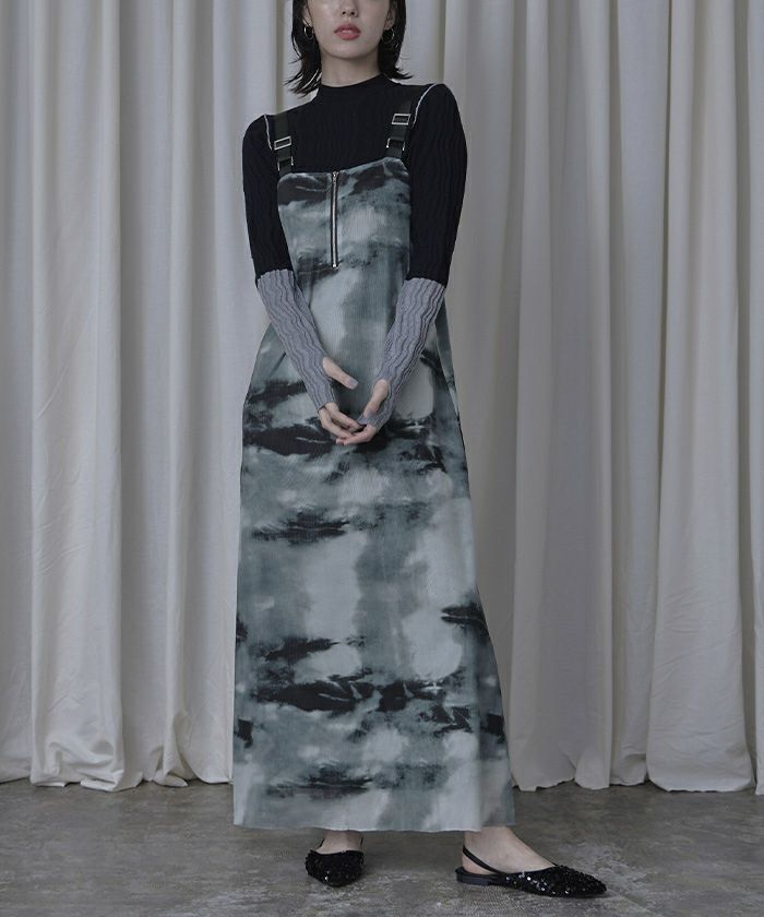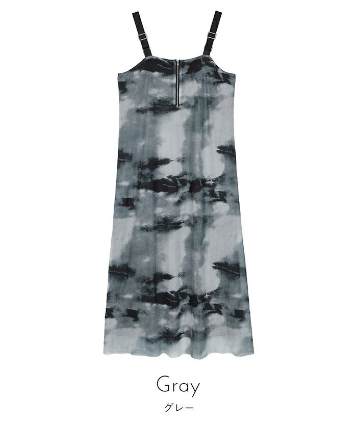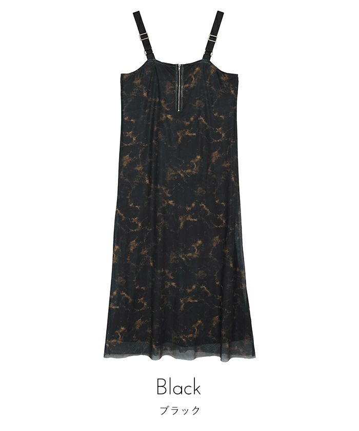 フロントジッププリントチュールワンピース【miette ミエット】