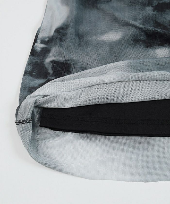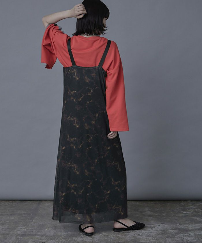 ・着映えする大胆なプリントのチュールワンピース。