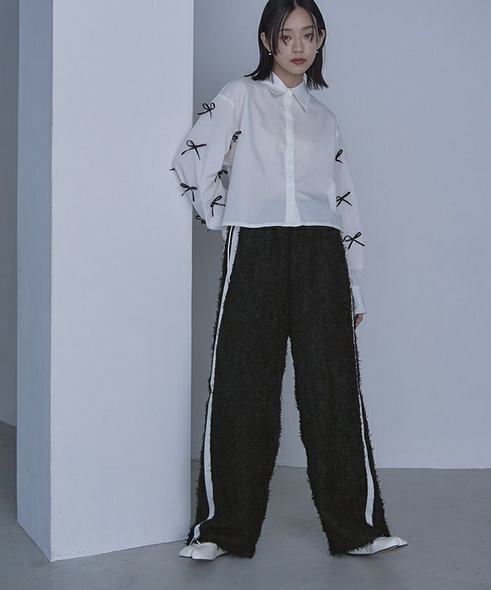 サイドリボンフリンジワイドパンツ【miette ミエット】