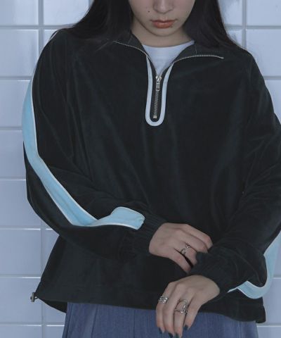 この製品は特有の光沢や風合を持ったベロア素材を使用しております。大変デリケートな性質があり、着用中の摩擦により下着などに毛羽が付着する事がありますが、外観への影響はありません。