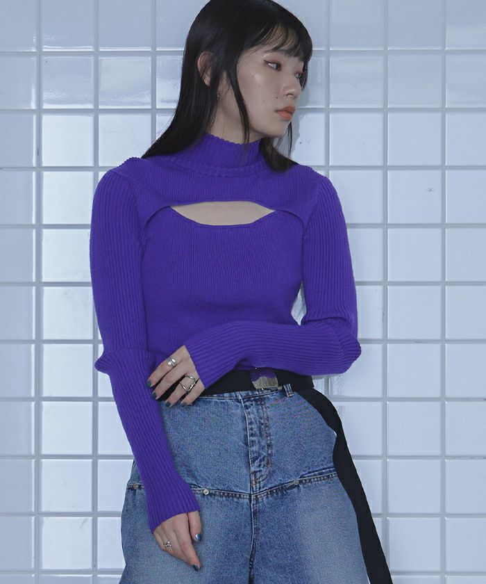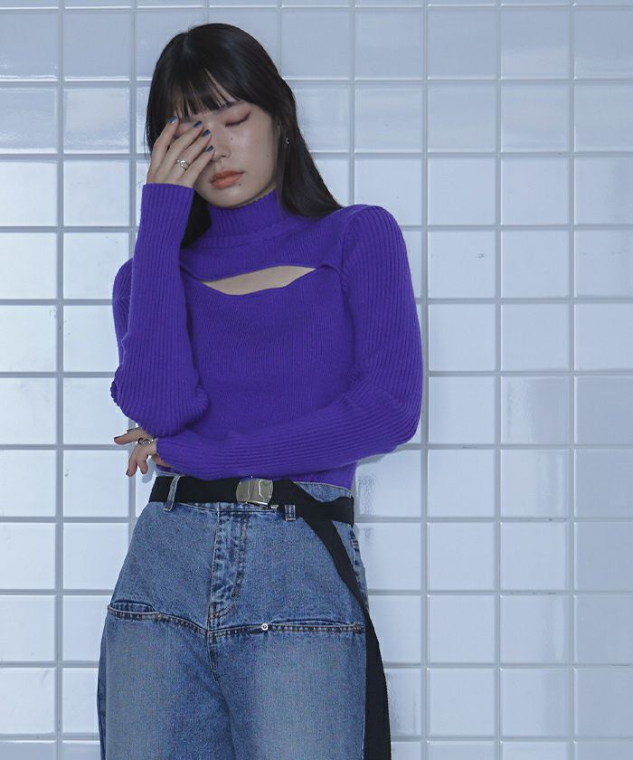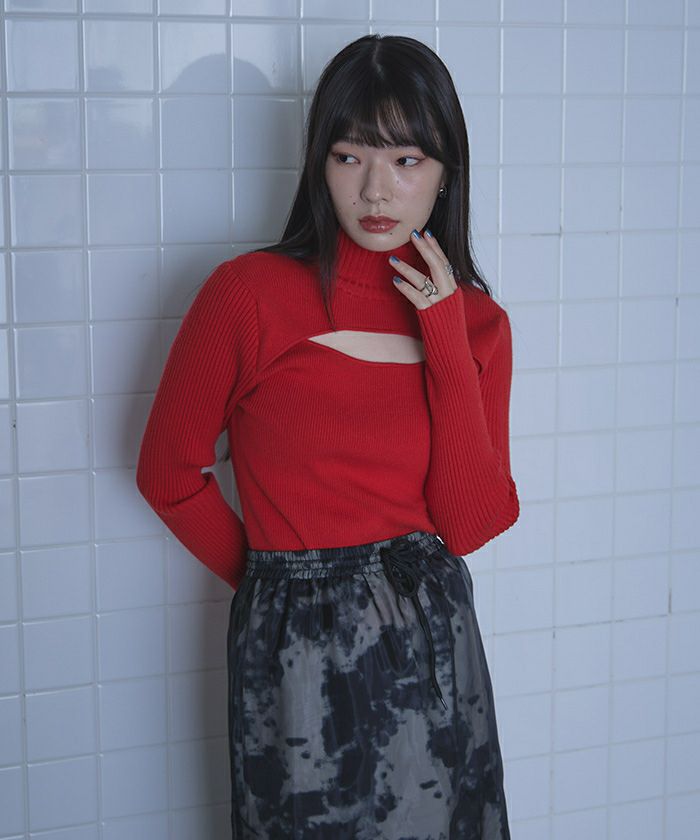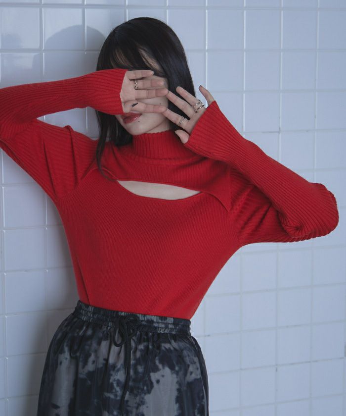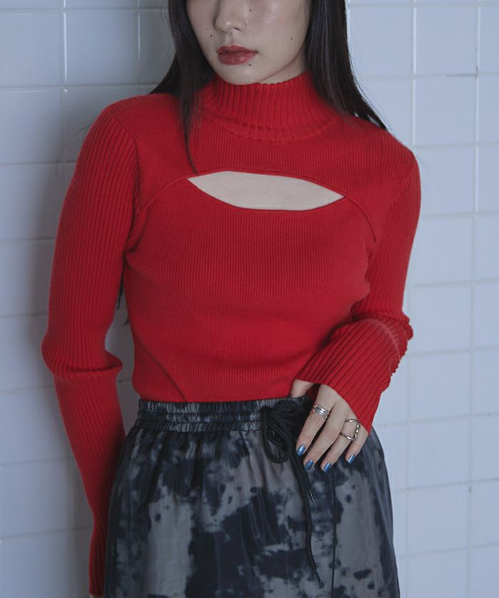 ・胸元のカットアウトデザインが程良い肌見せで抜け感のあるニット