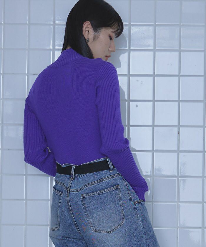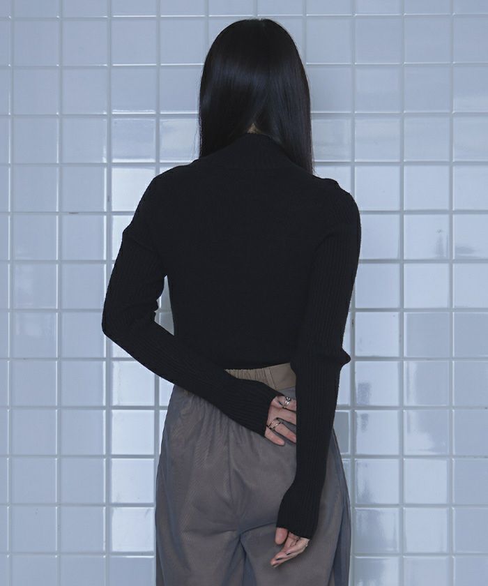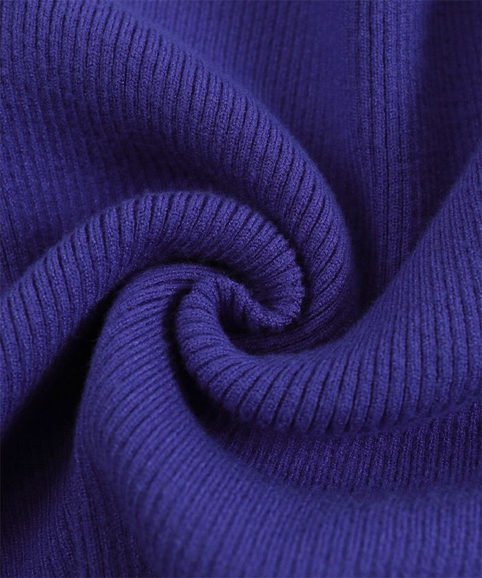 ・手触りの良いリブニット素材、袖と身頃でリブの太さが違うのもデザインポイントです。