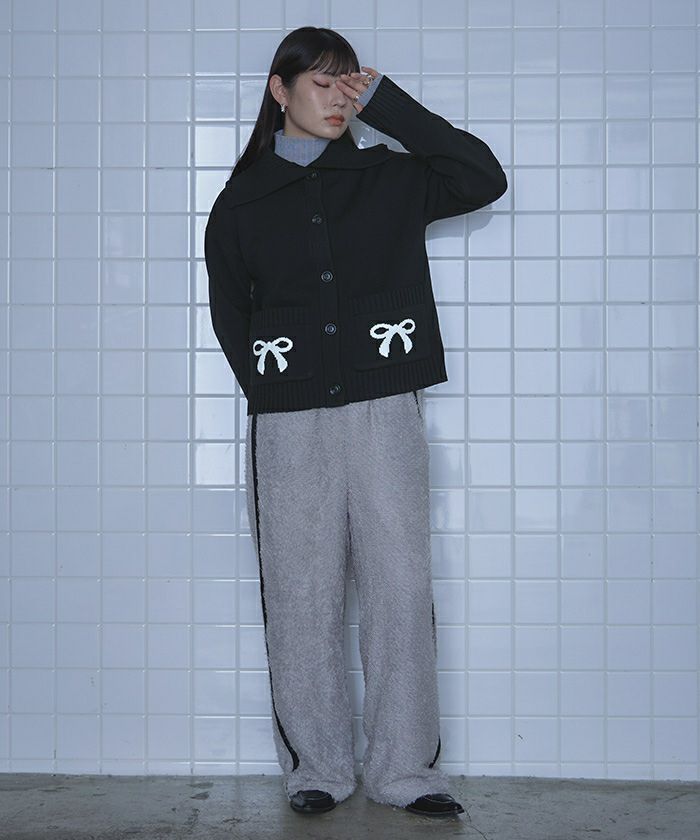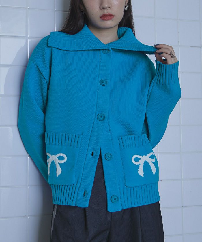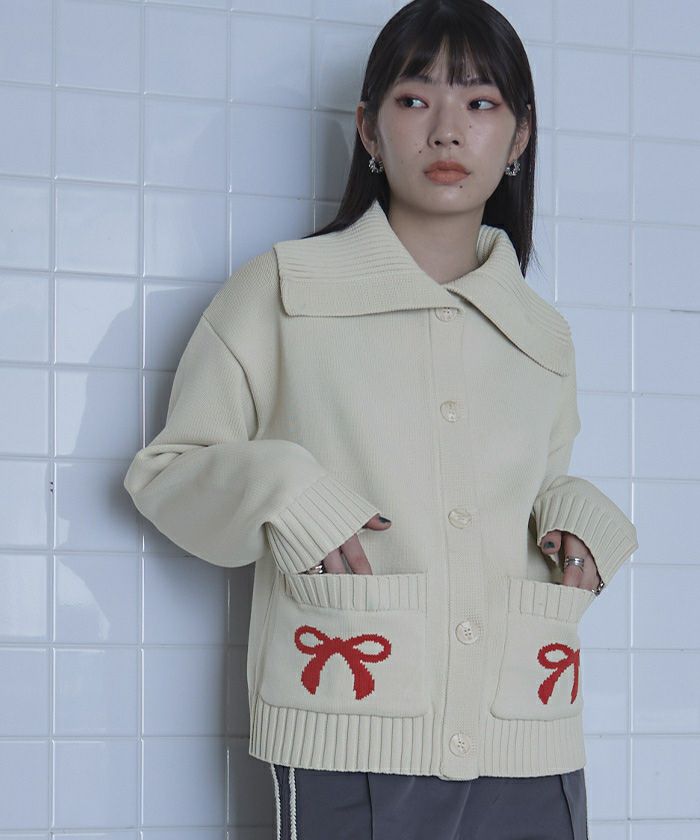 ■【miette】【期間限定★SALE】 リボンポケットニットカーディガン【miette ミエット】