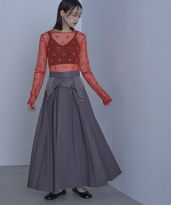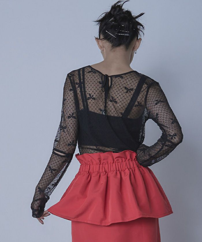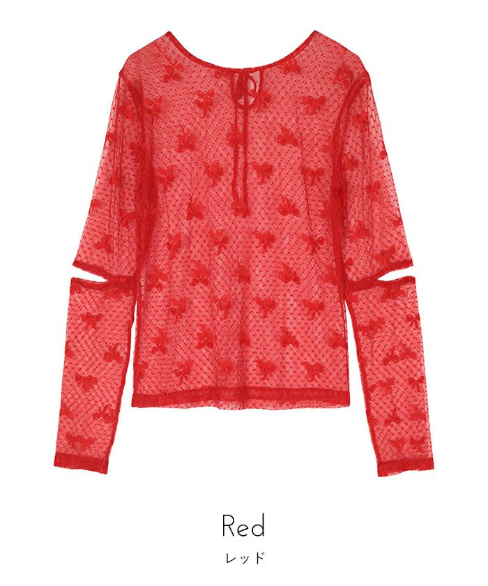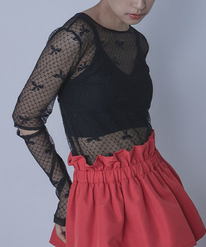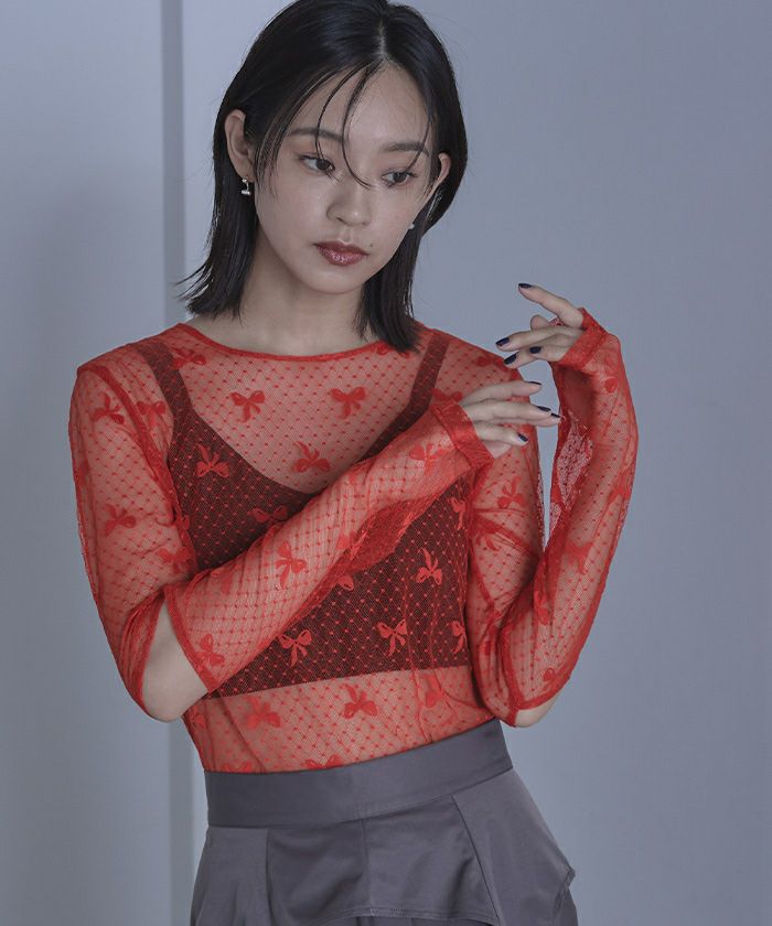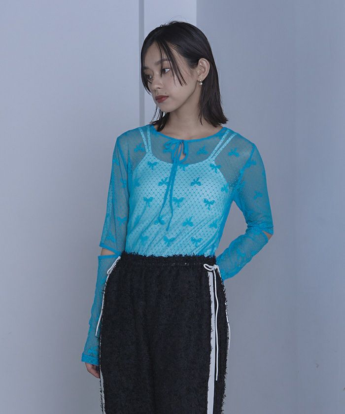 ・トレンドのリボン柄のチュール生地を使ったトップス。