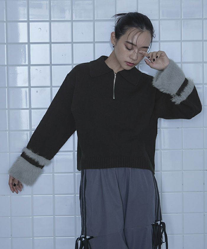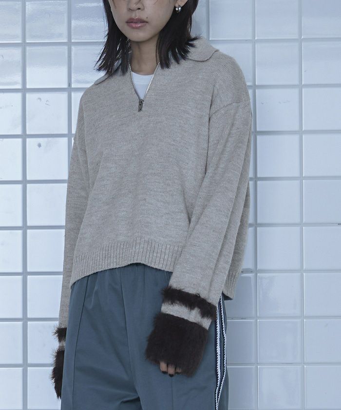 シャギー切替ハーフジップニット【miette ミエット】
