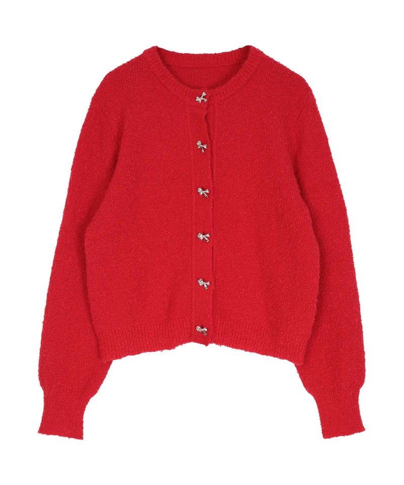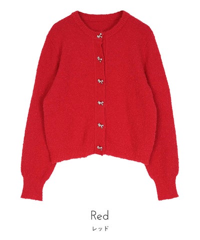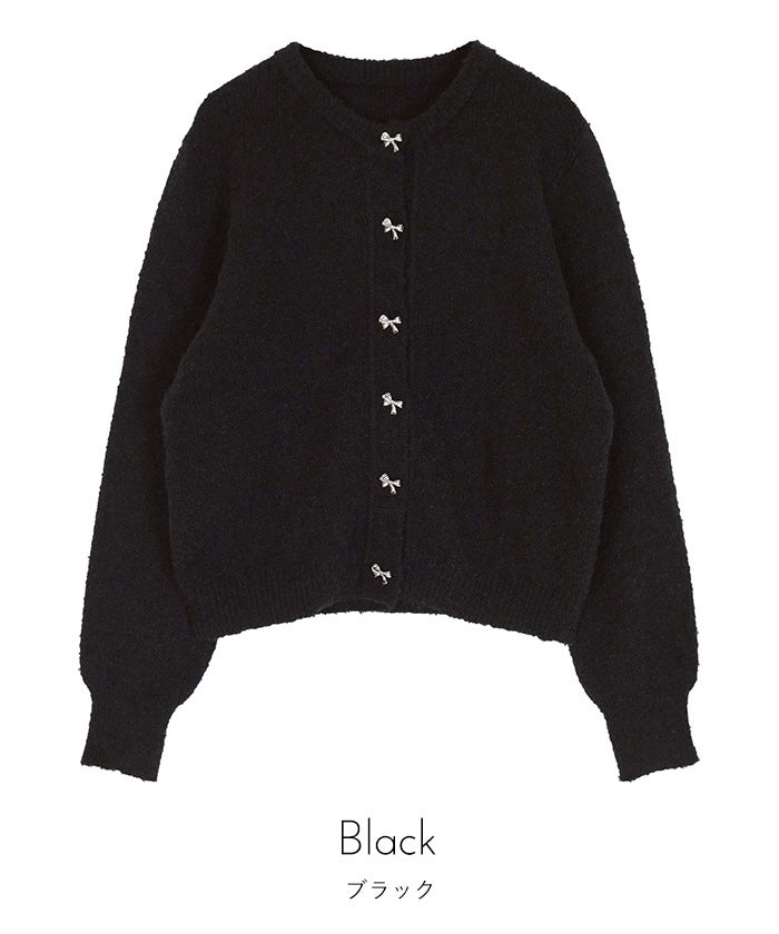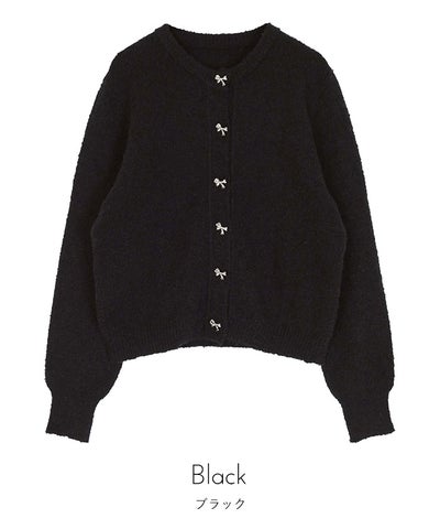 リボンボタンブークレニットカーディガン【miette ミエット】