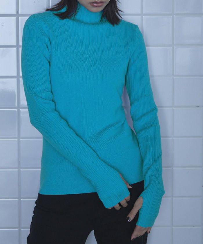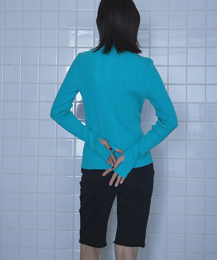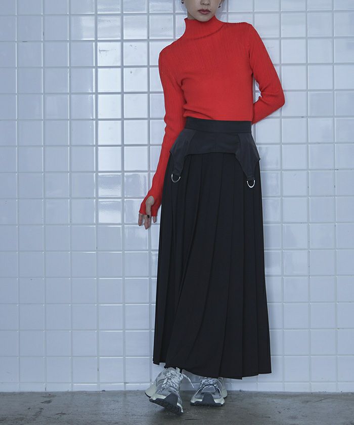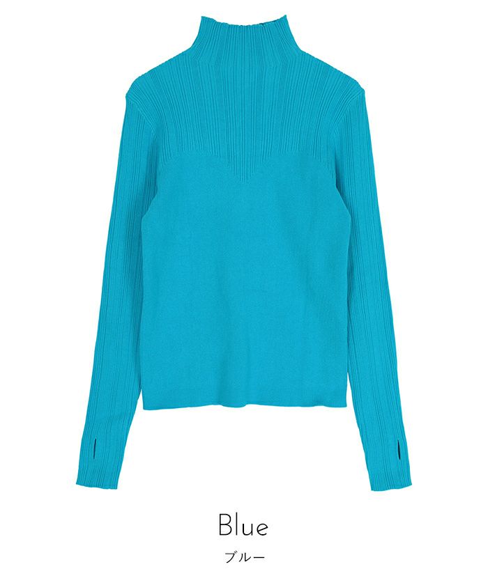 ・ビスチェ風に切り替わった編み地がポイントのリブニット