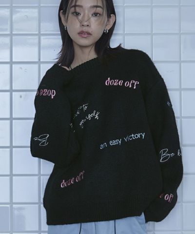 ・カラフルなロゴ刺繍がポイントのニット