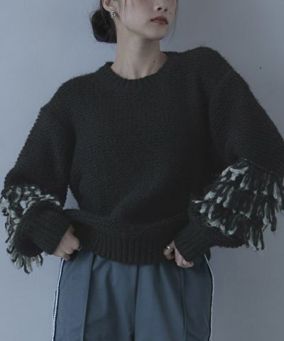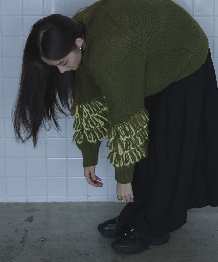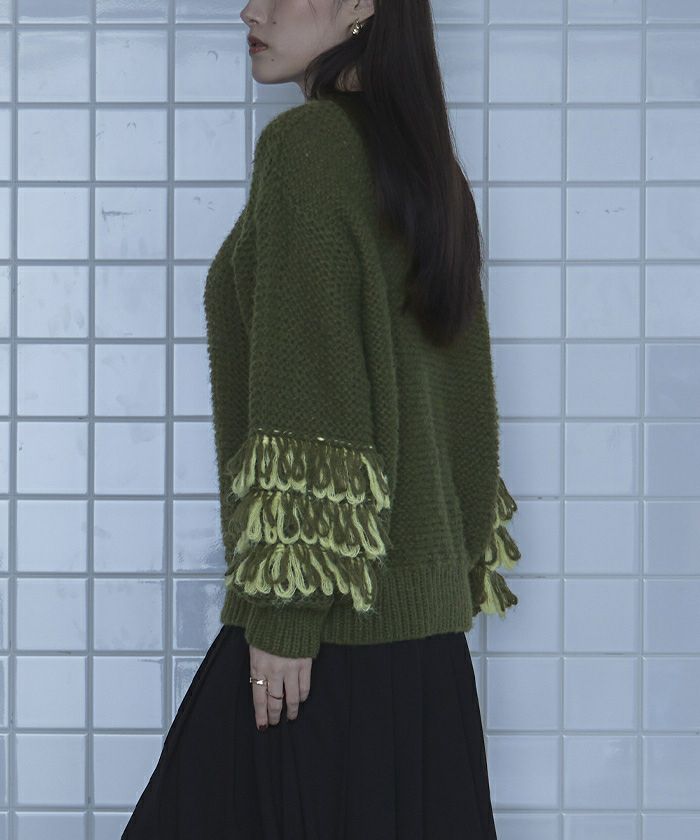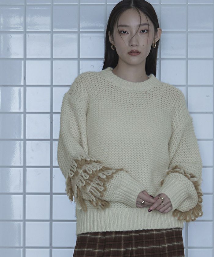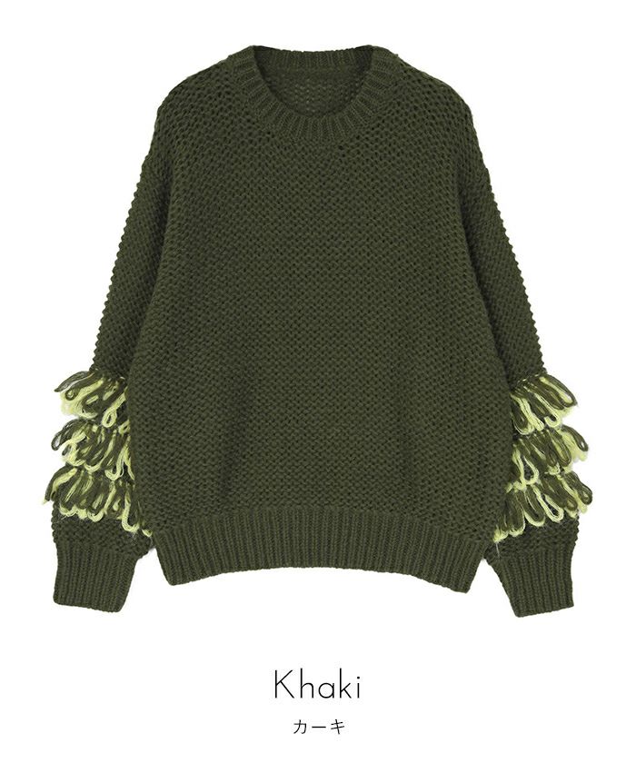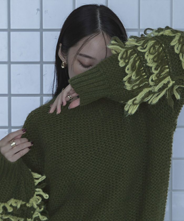 ・2色のループがポイントのニット