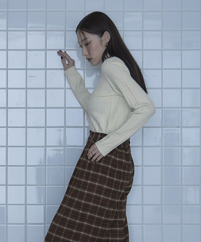 ・ジグザグの編み地がシンプルながらにかわいいリブニット