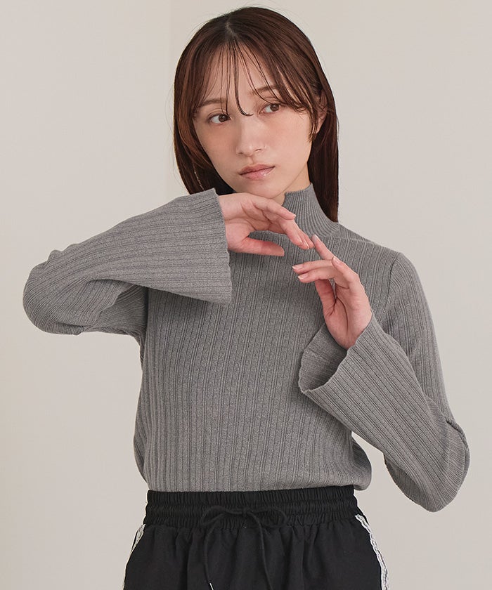 ・表面感のあるランダムリブ編み地がシンプルながらにおしゃれな1枚