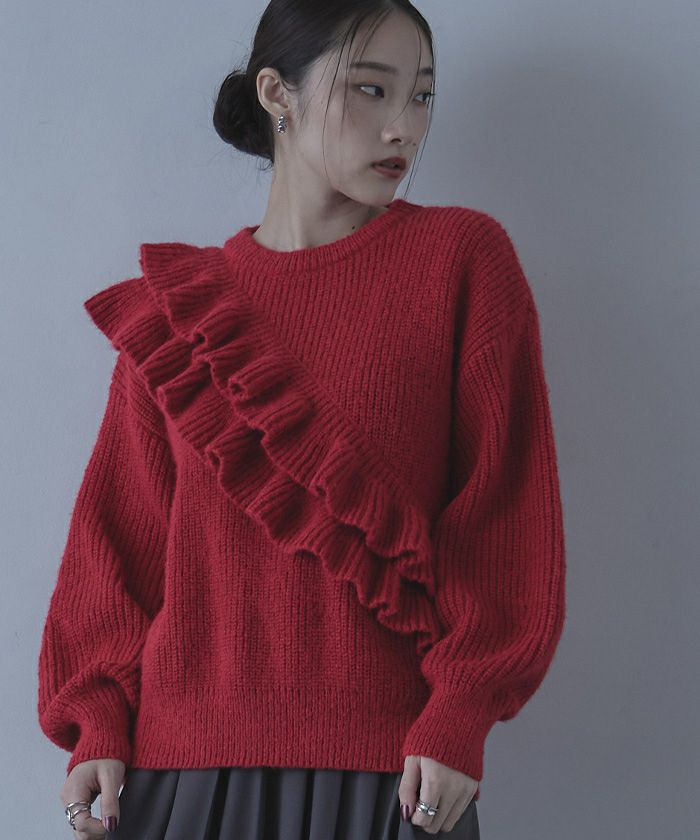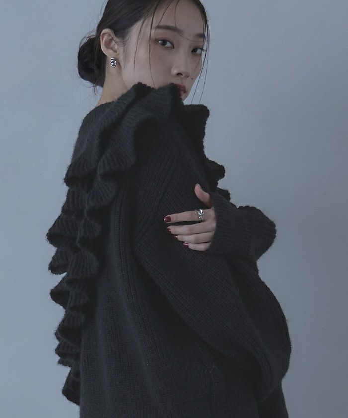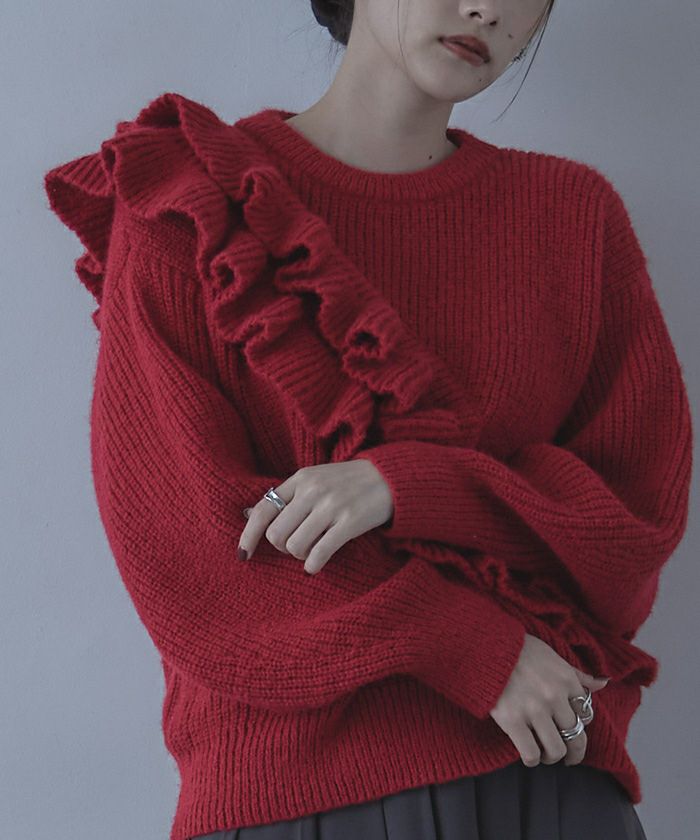 ・ボリューム感のある2枚のフリルが印象的なニット