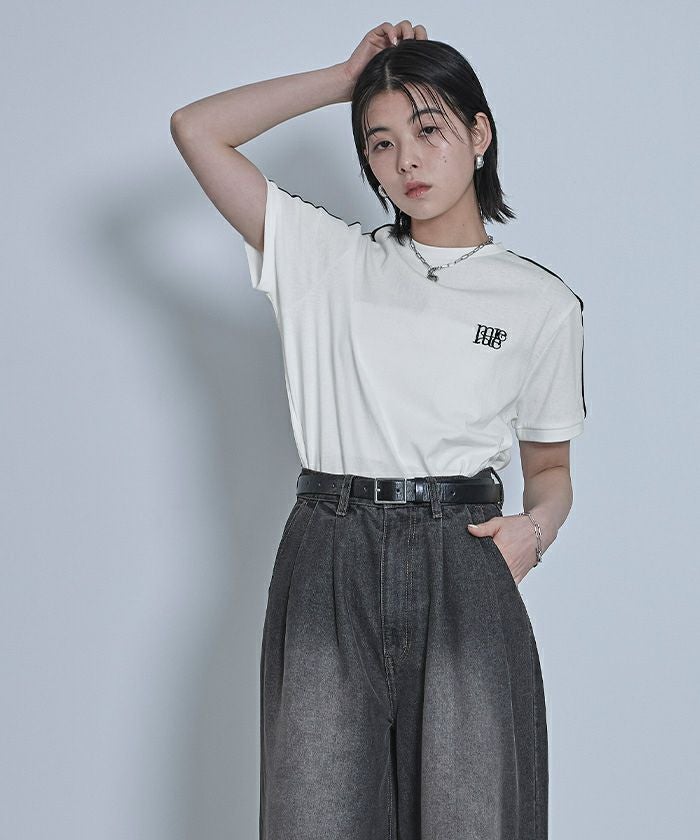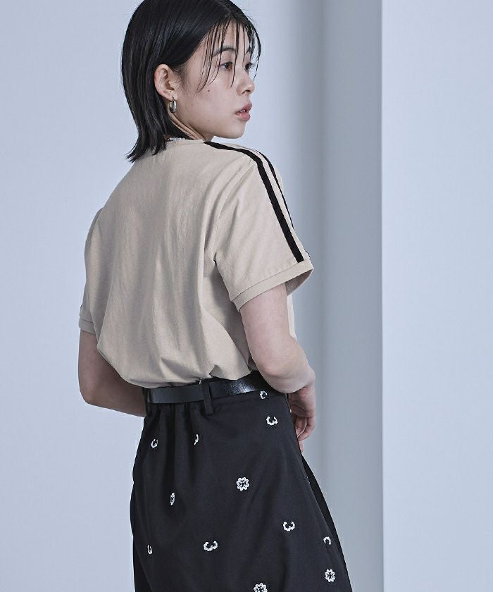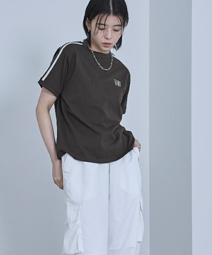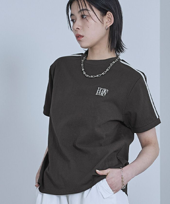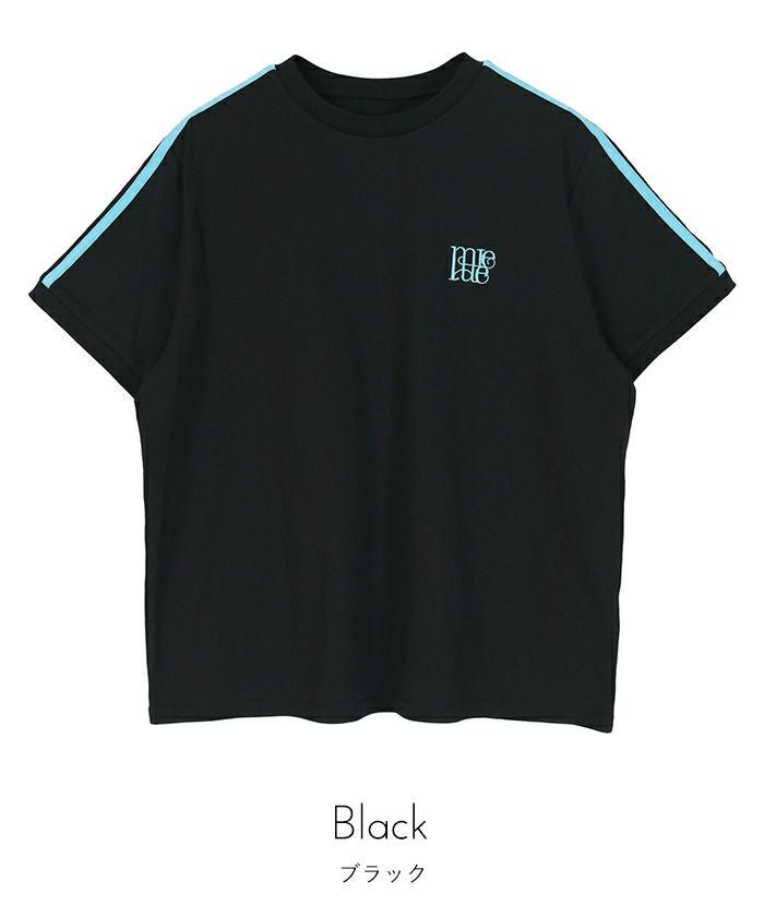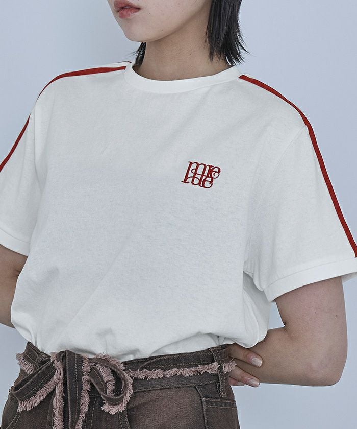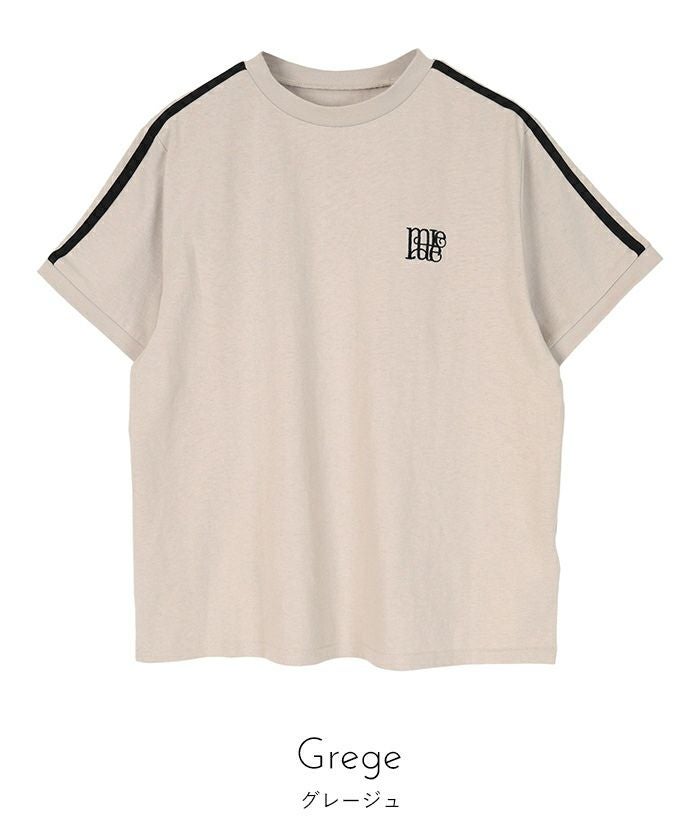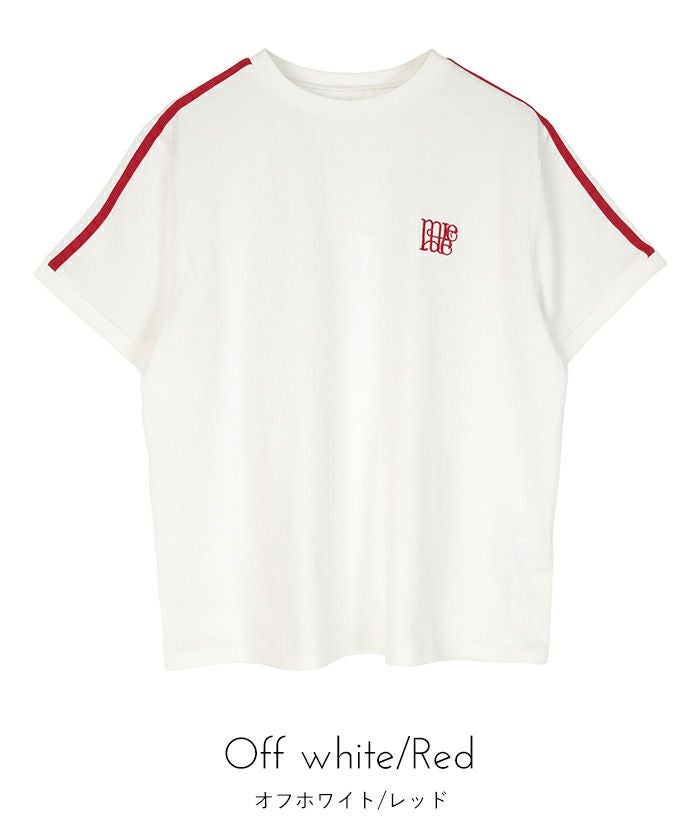 ロゴ刺繍ラインTシャツ【miette ミエット】【メール便可/100】