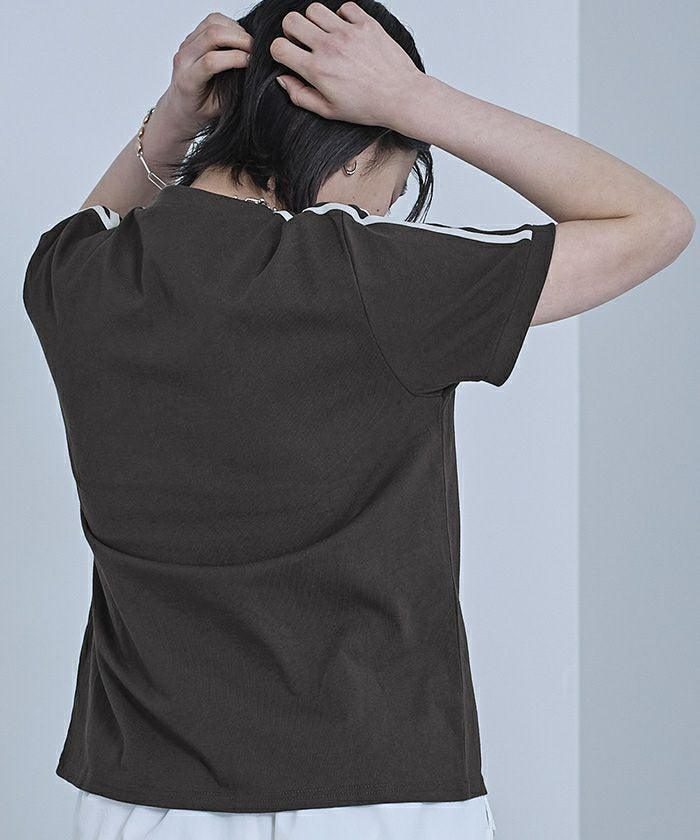 ・胸元のロゴ刺繍がポイントのTシャツ