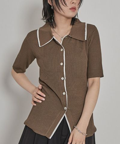 ・配色のダブル襟デザインが今っぽい半袖ポロニット