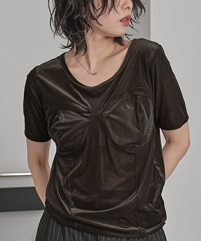ビスチェデザインシアーベロア半袖トップス【miette ミエット】【メール便可/100】