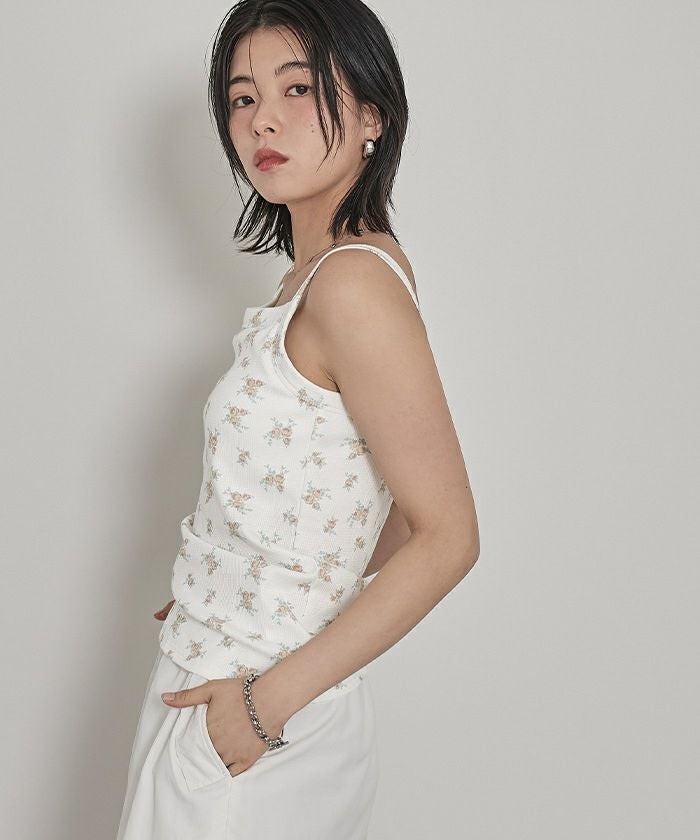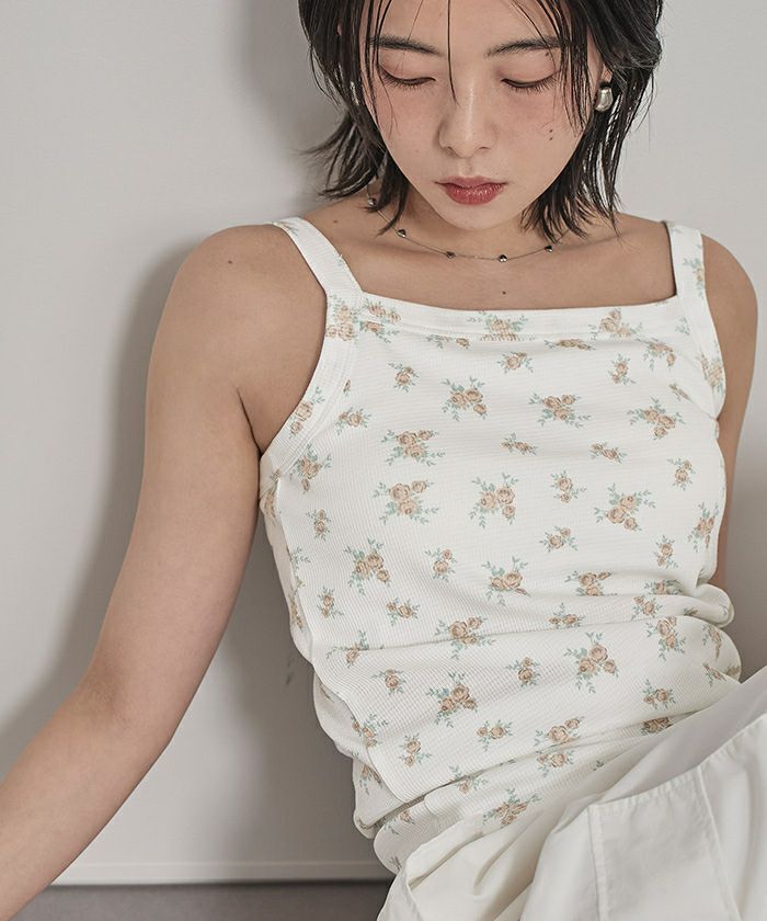 カップ付き小花柄サーマルキャミ【miette ミエット】