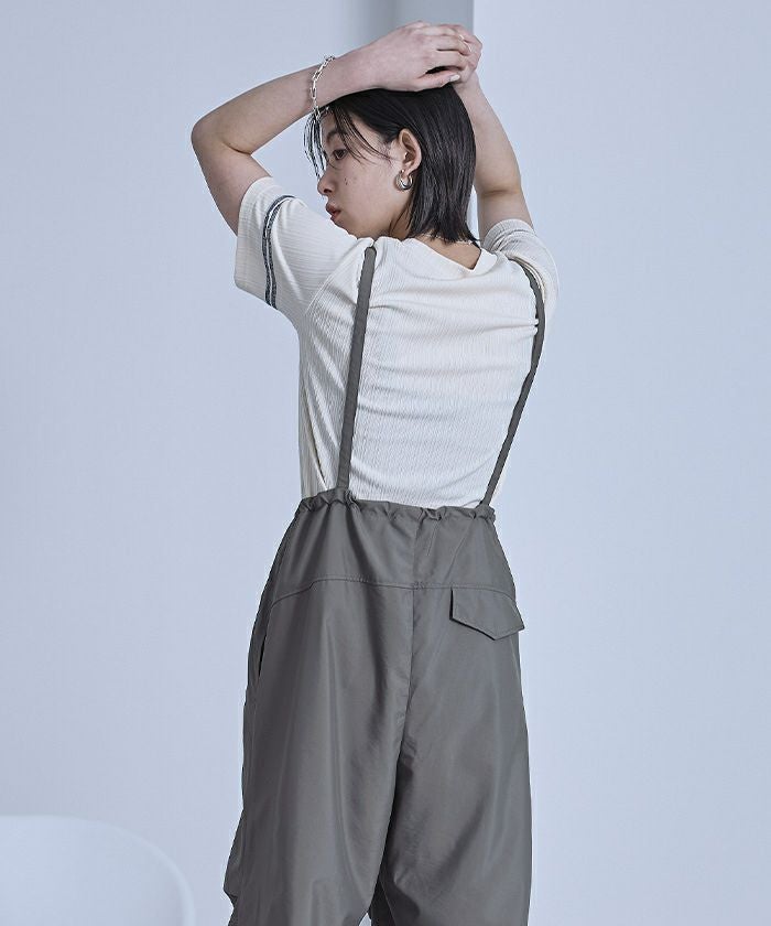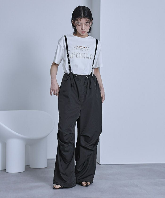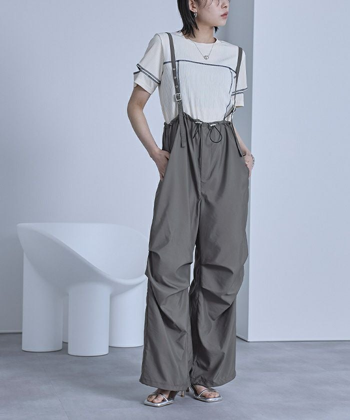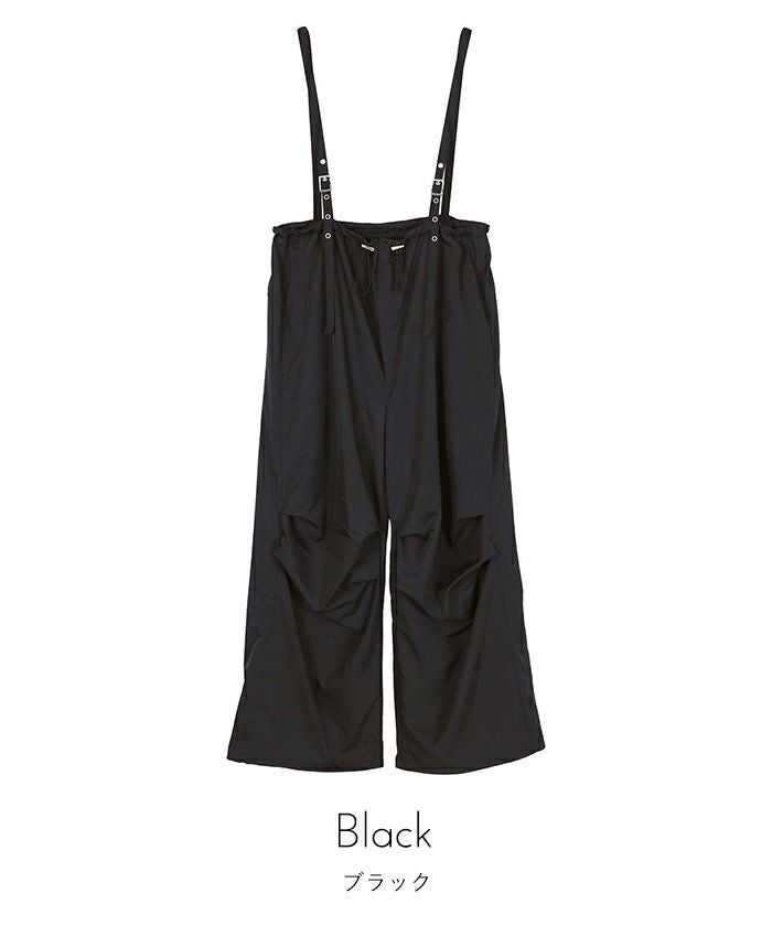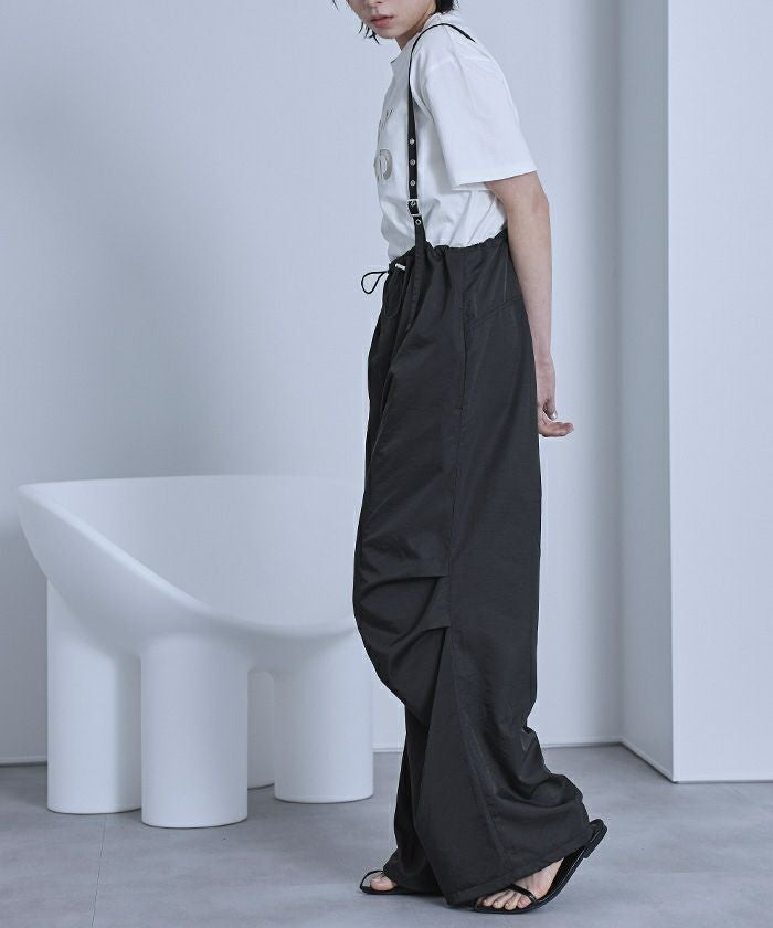・トレンド感のあるパラシュートパンツにサスペンダーが付いたデザイン