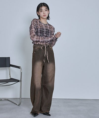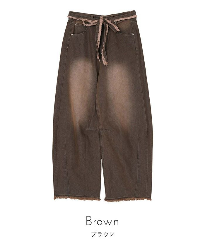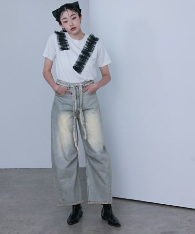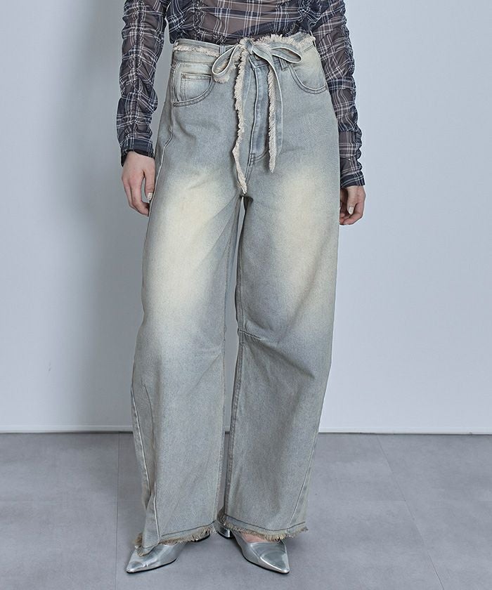 ウエストリボンカーブラインデニムパンツ【miette ミエット】