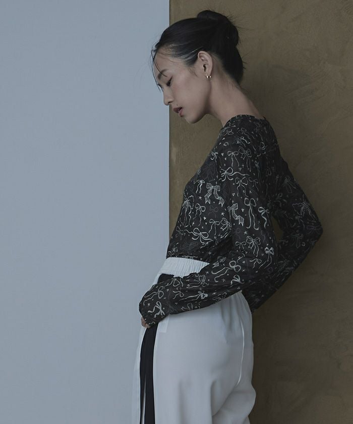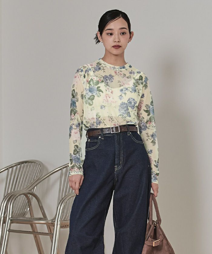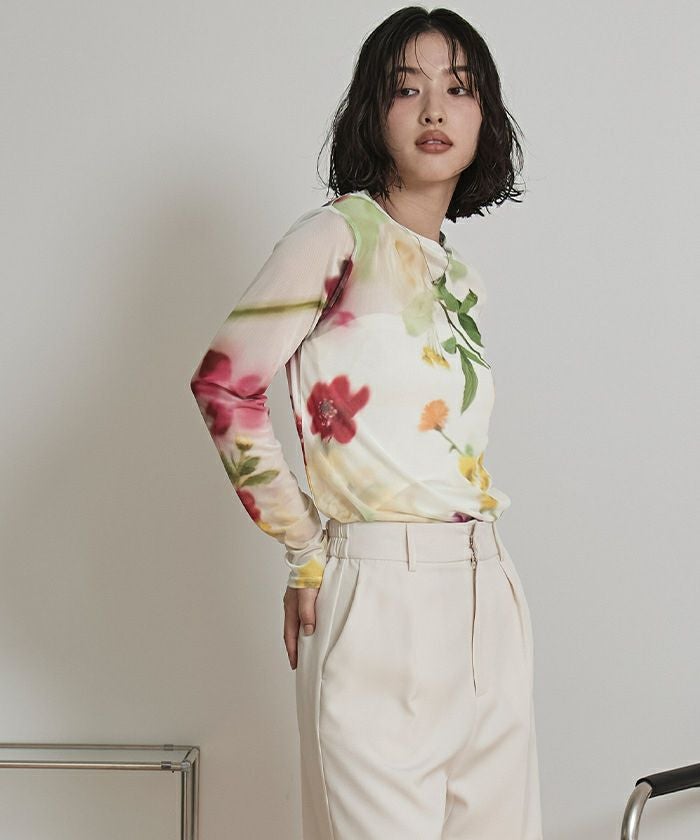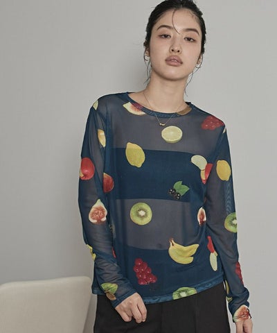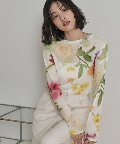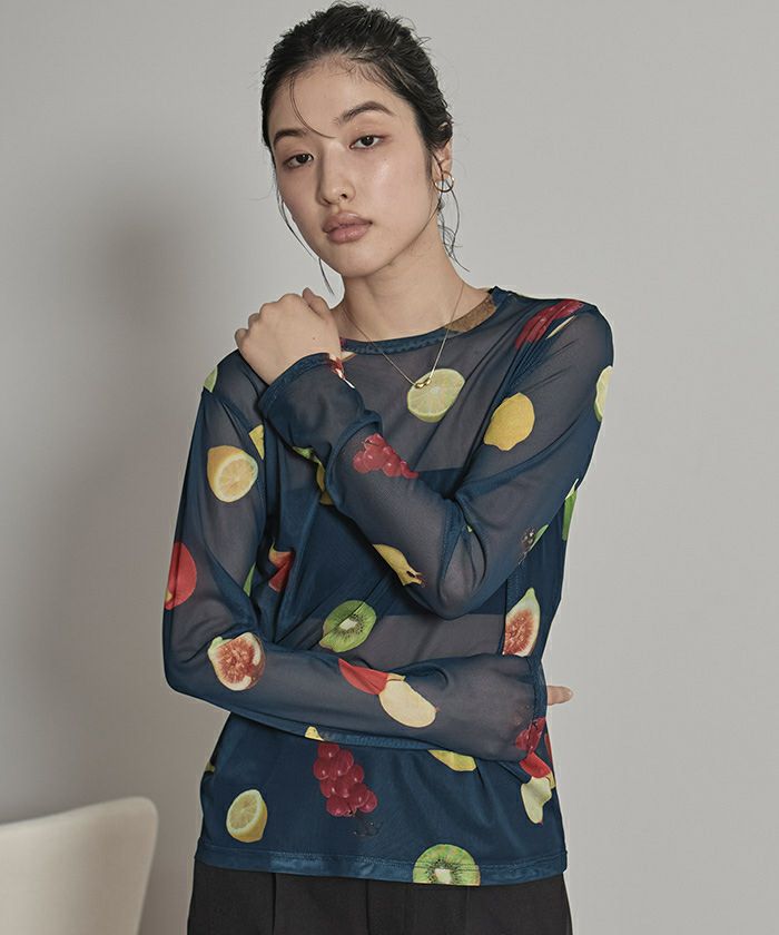 ・大胆なプリント柄のチュールトップス