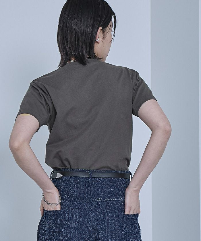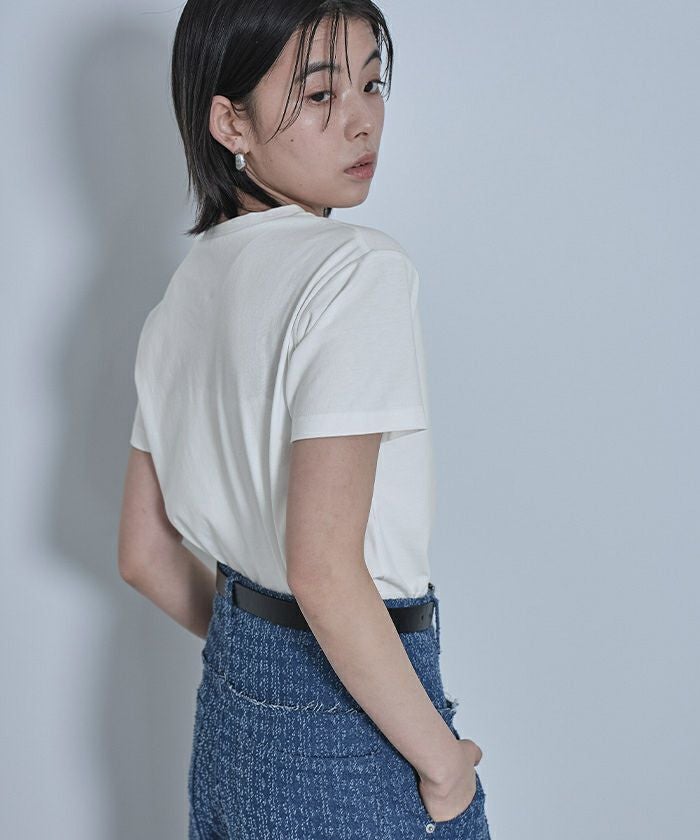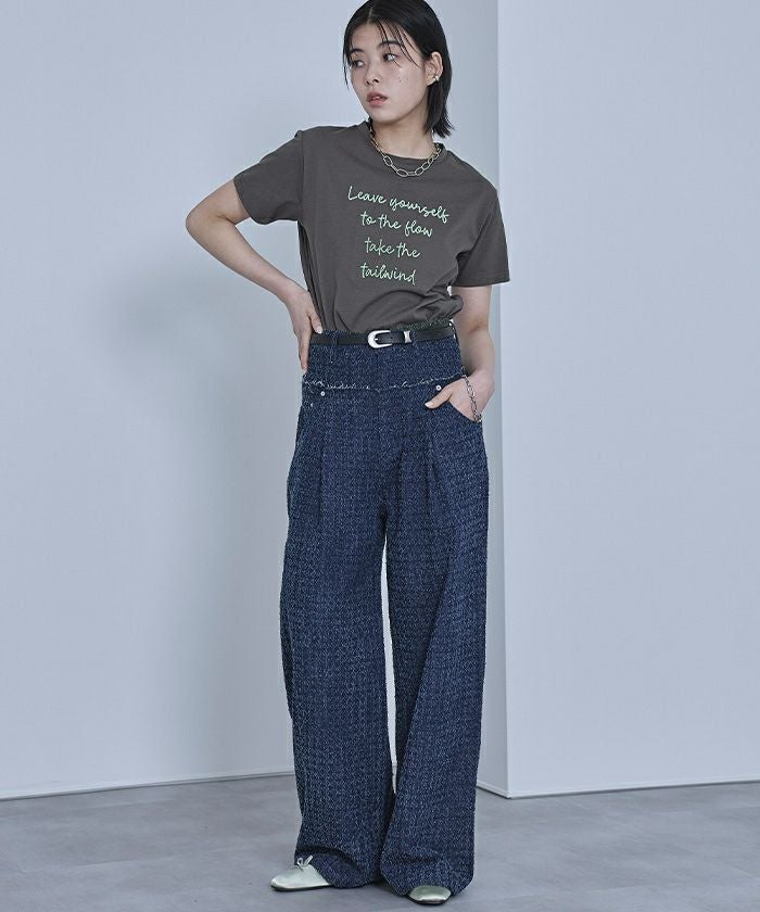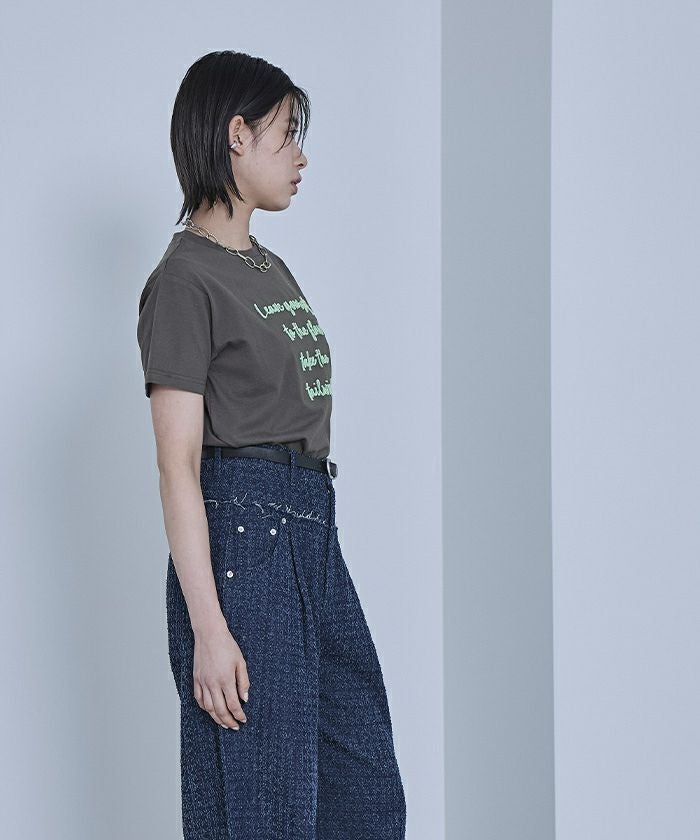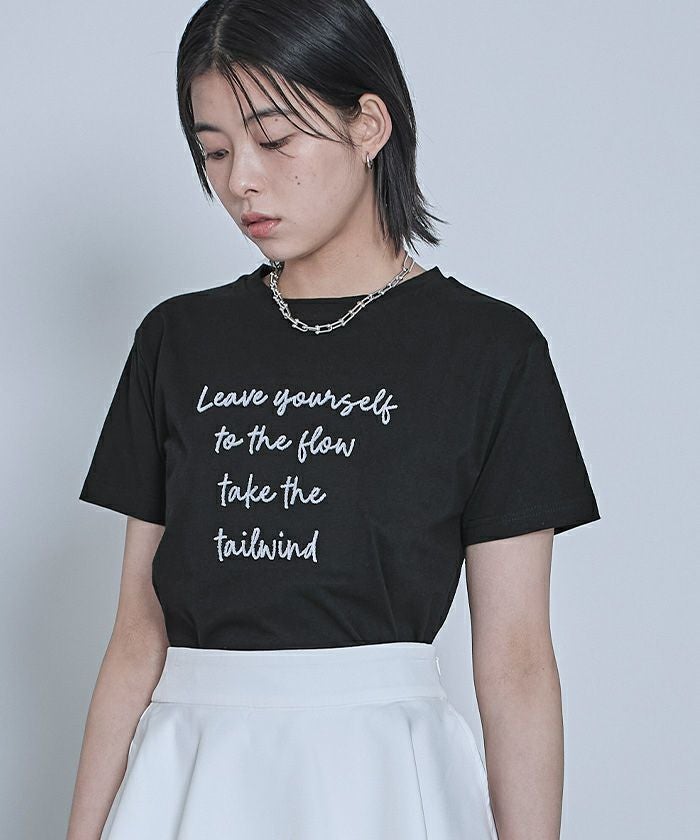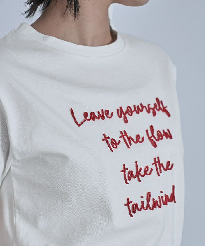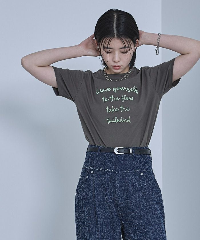・ブラシのような毛羽の立体感がある刺繍を施したTシャツ