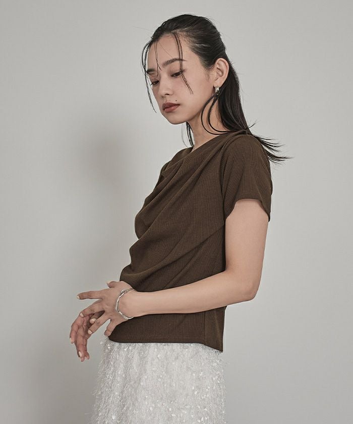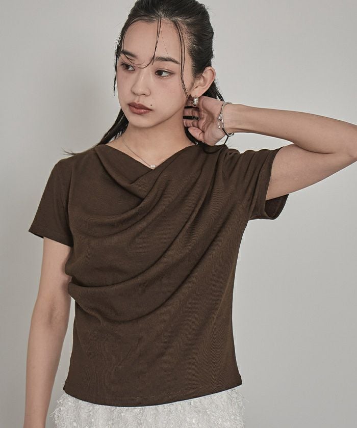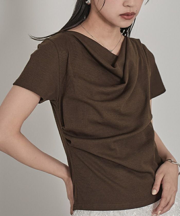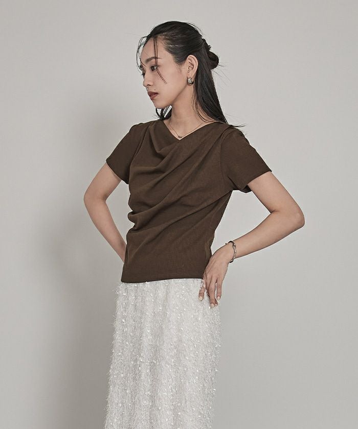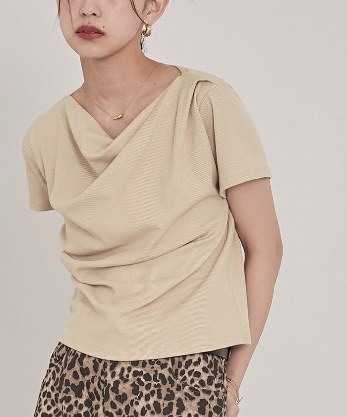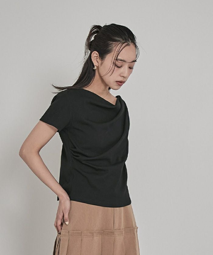 ・首周りの立体感のあるドレープデザインがデコルテラインを綺麗に見せてくれます◎
