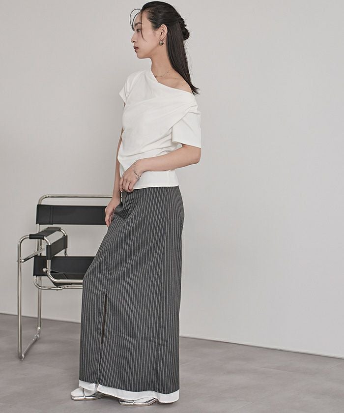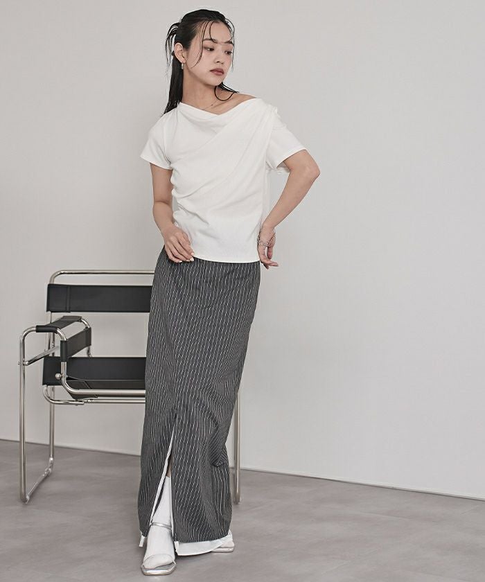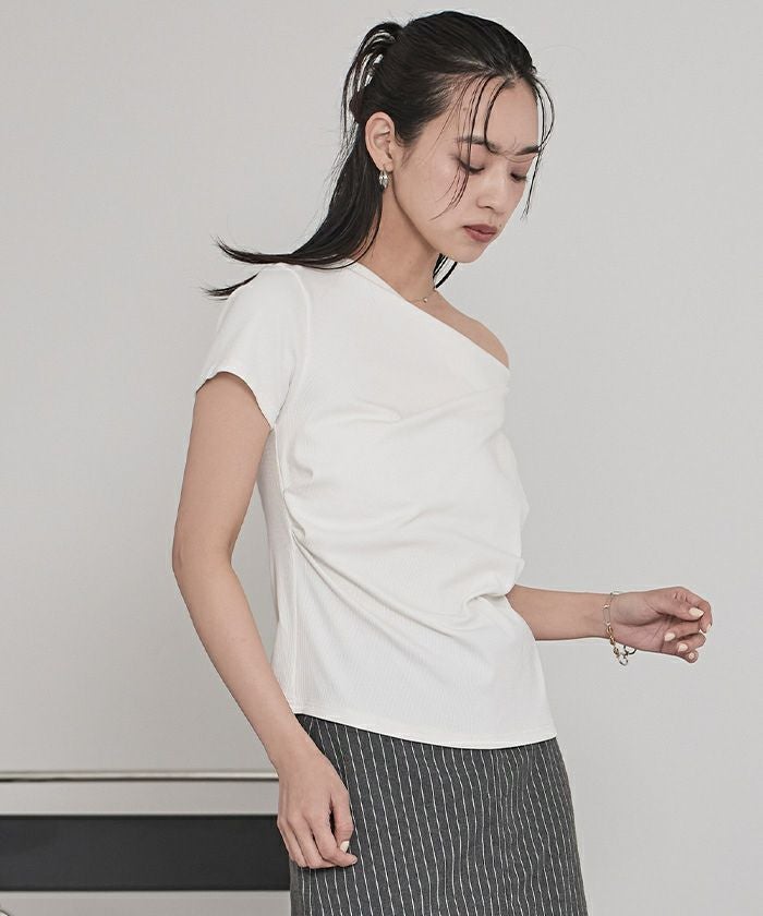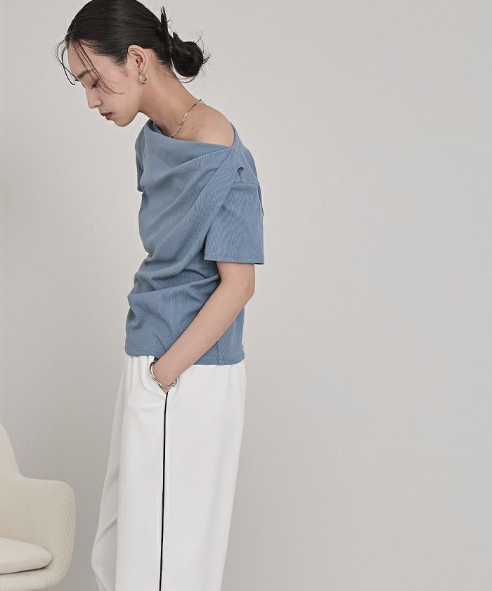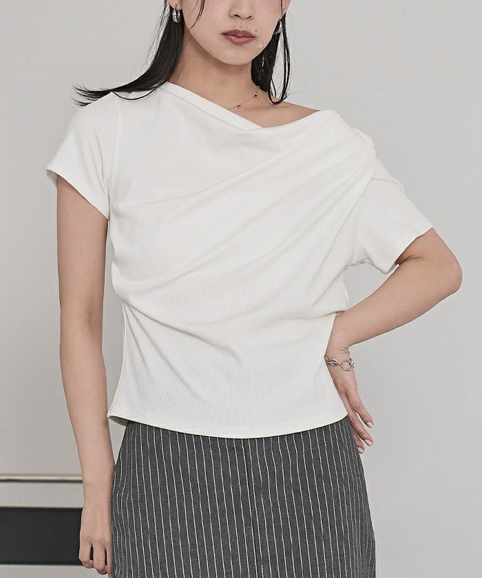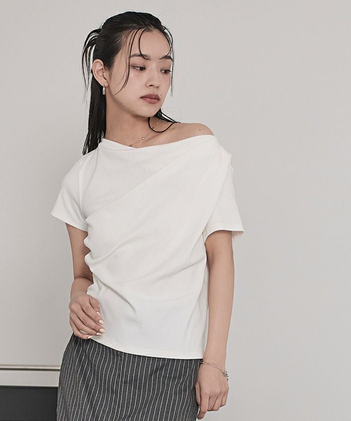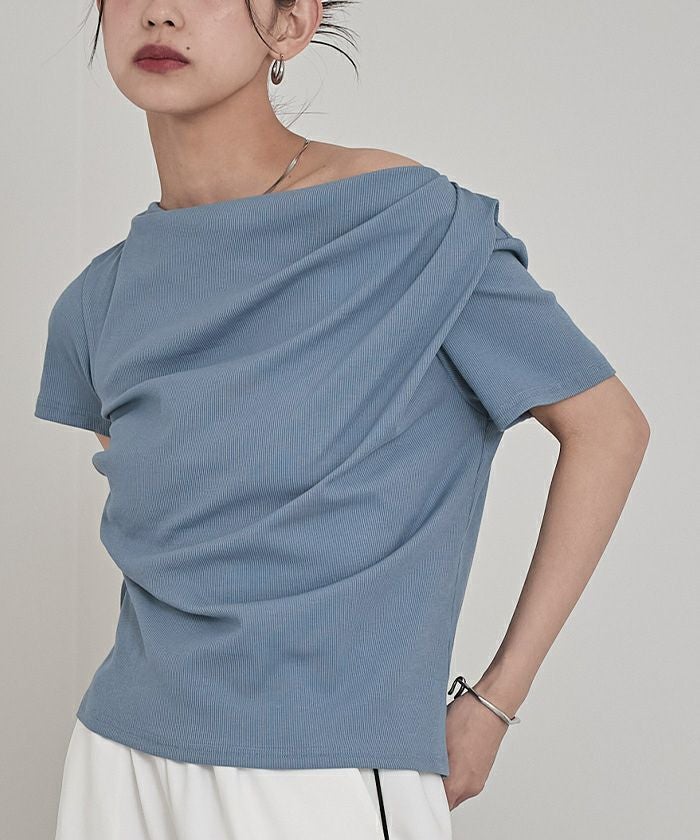 ・首周りの立体感のあるドレープデザインがデコルテラインを綺麗に見せてくれます◎