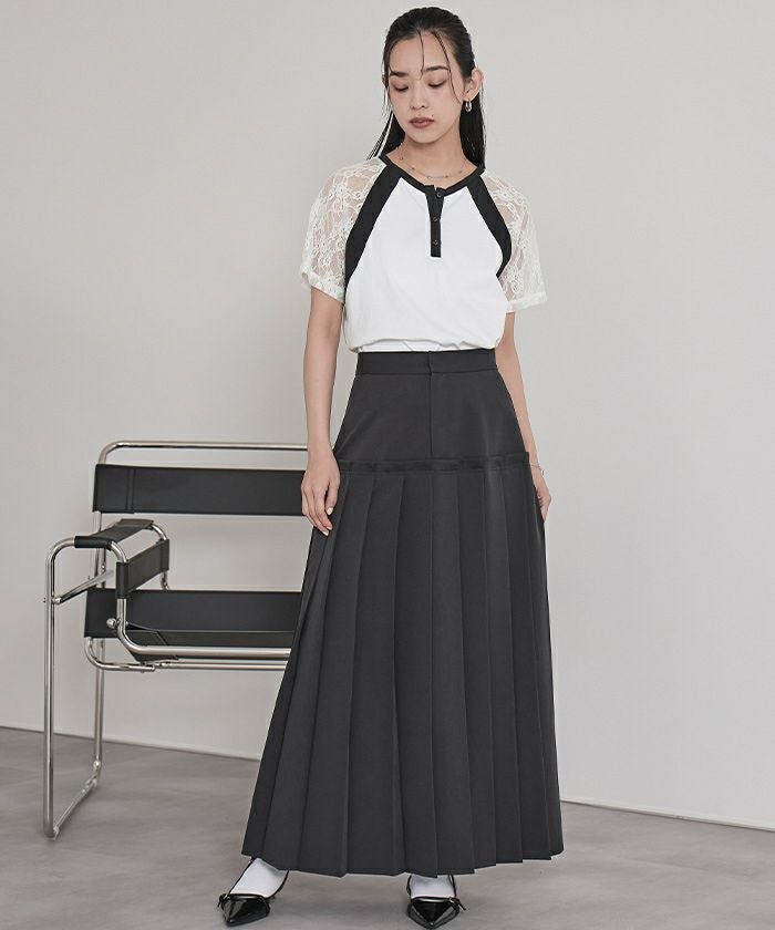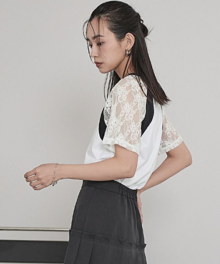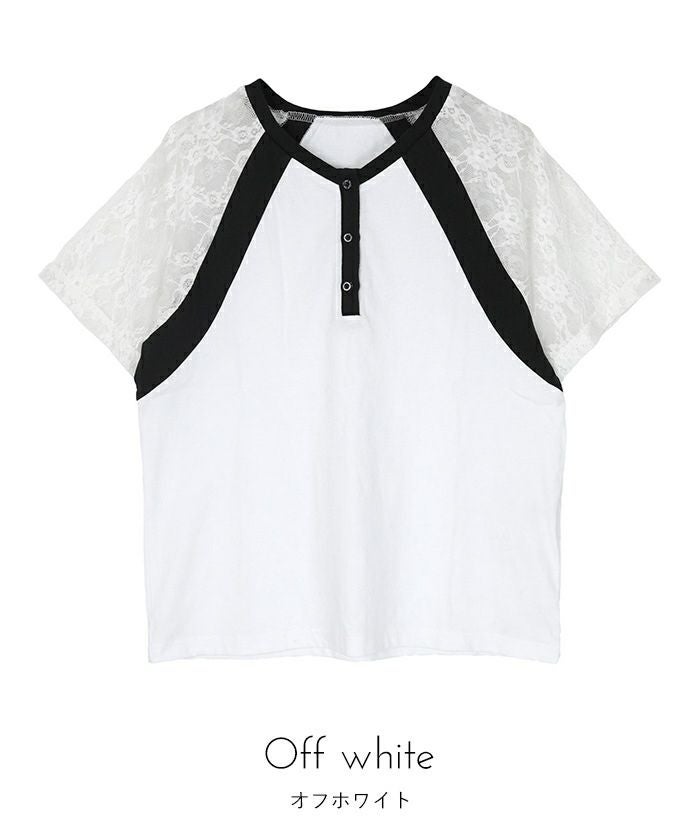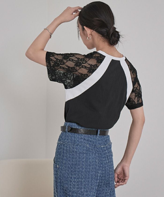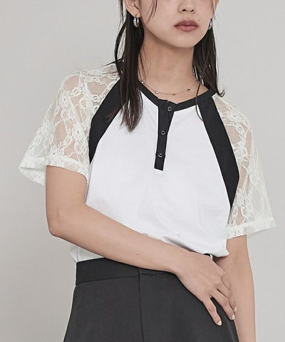 ・レース袖が抜け感のあるラグランスリーブTシャツ