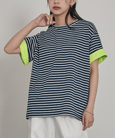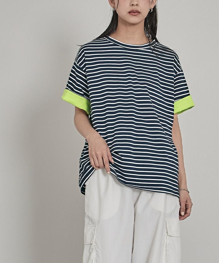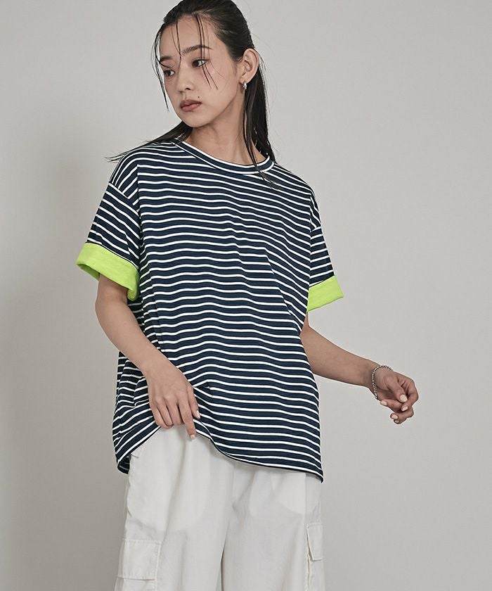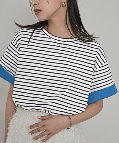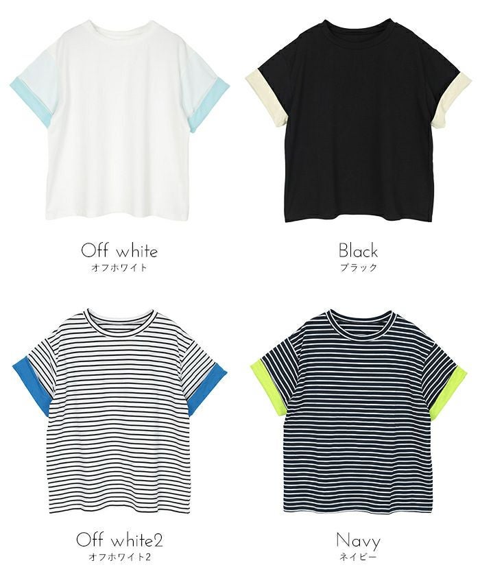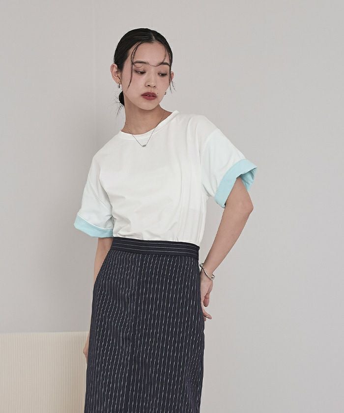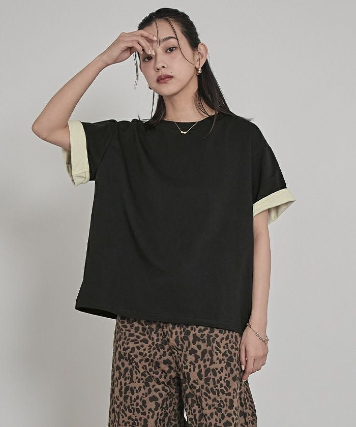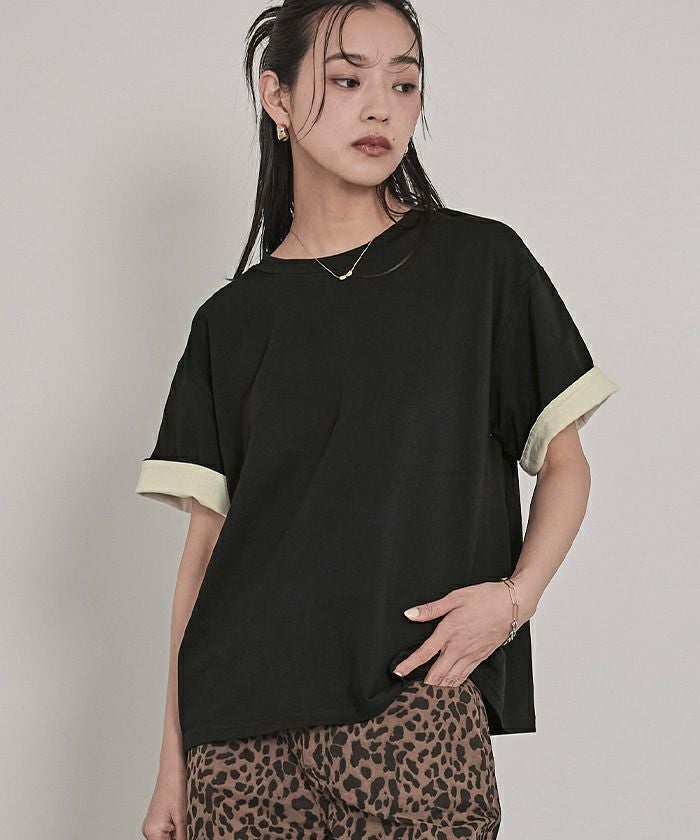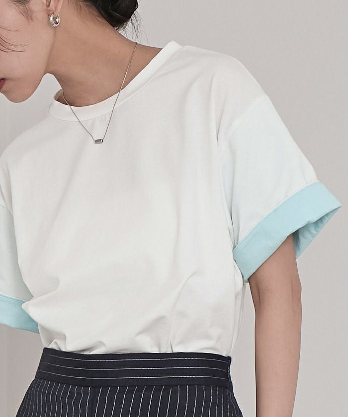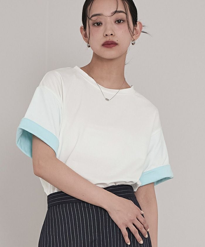 配色ロールアップTシャツ【miette ミエット】【メール便可/100】