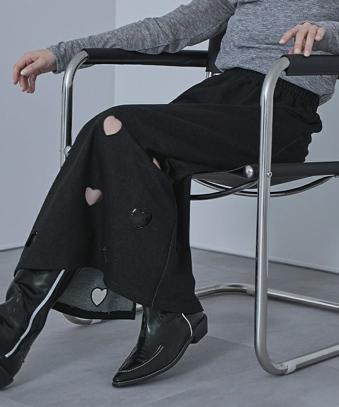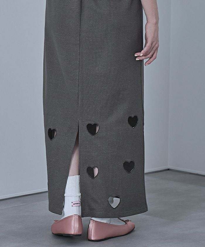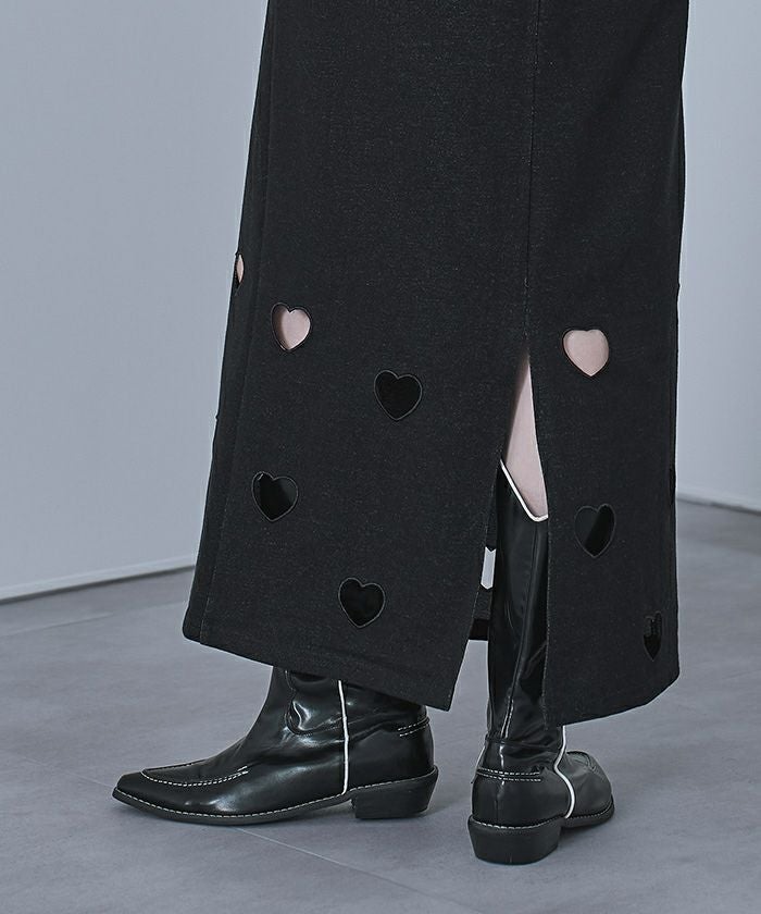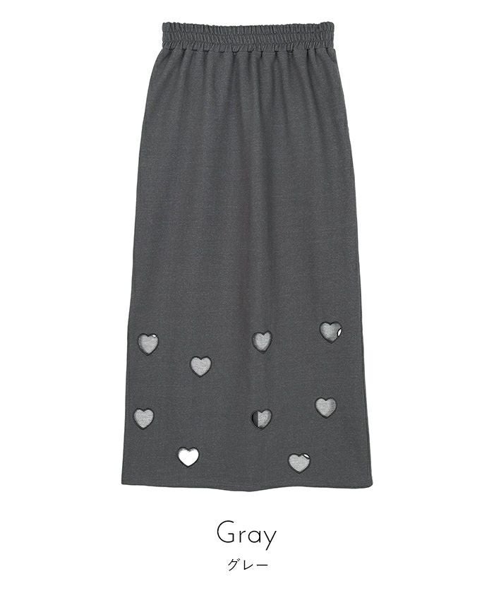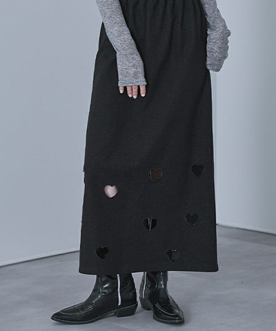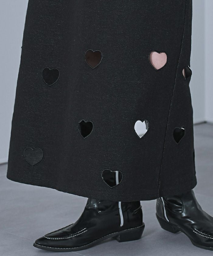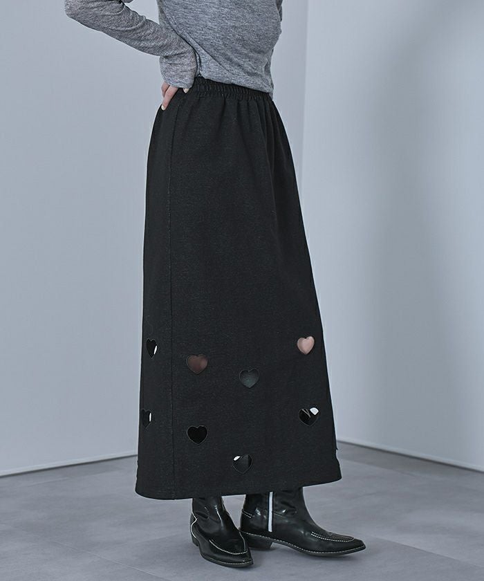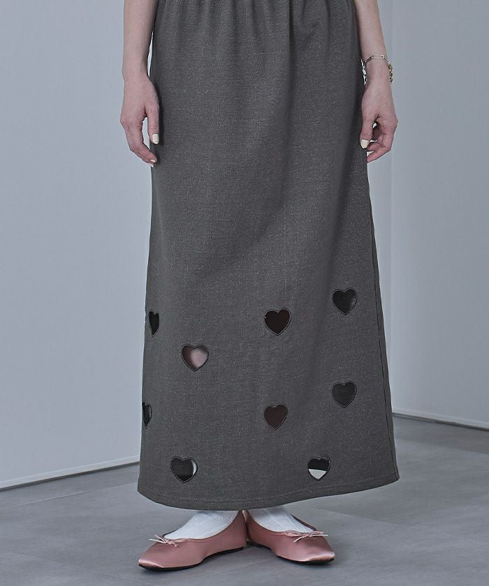 ・ハートのくり抜き刺繍が目を引くスカート