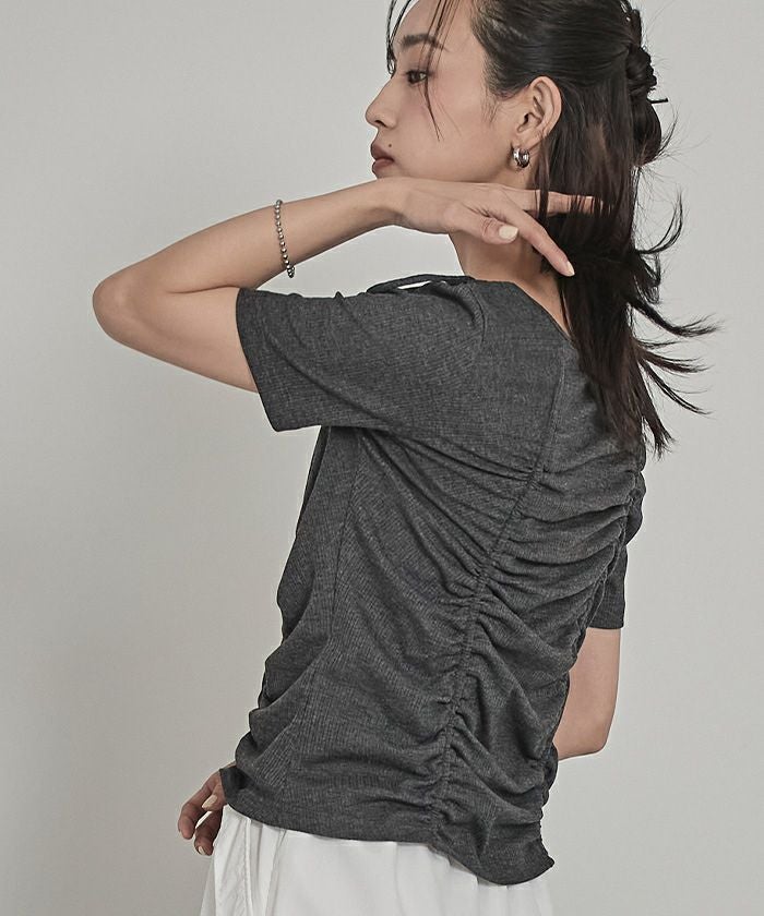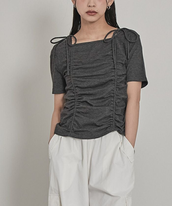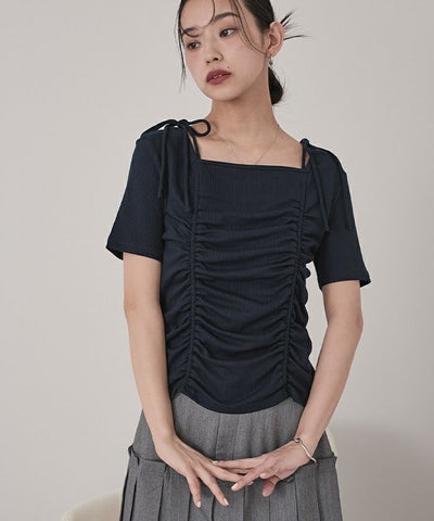 ドロストリボン半袖リブトップス【miette ミエット】