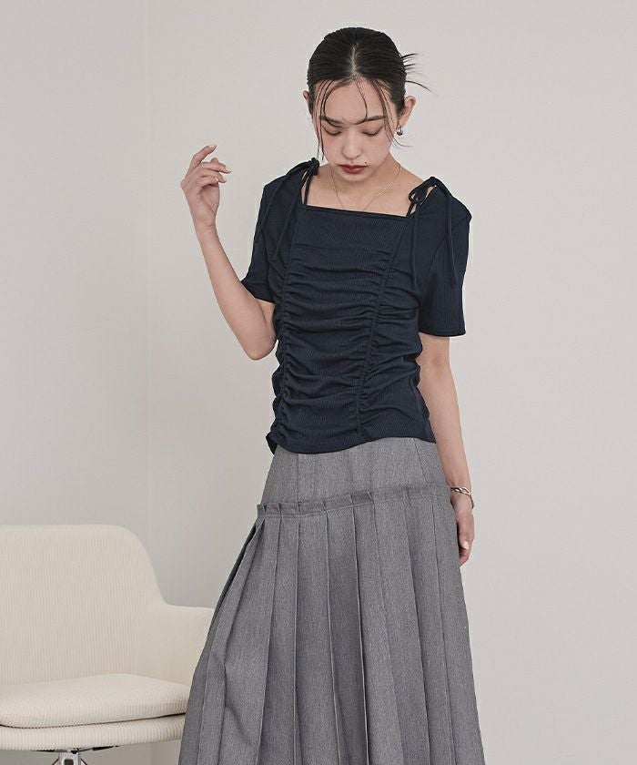 ・スクエアネックがデコルテをきれいに見せてくれます。
