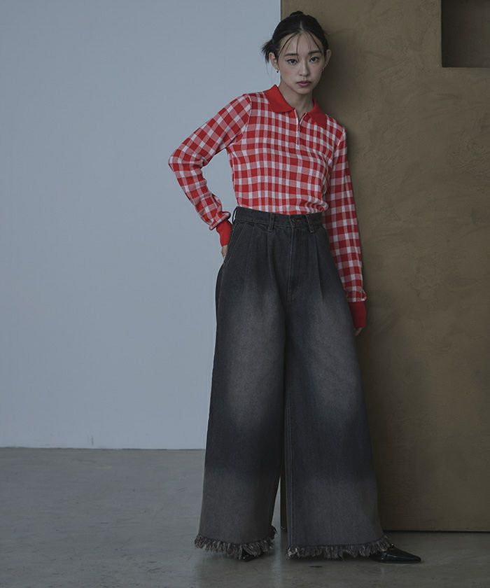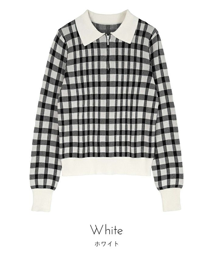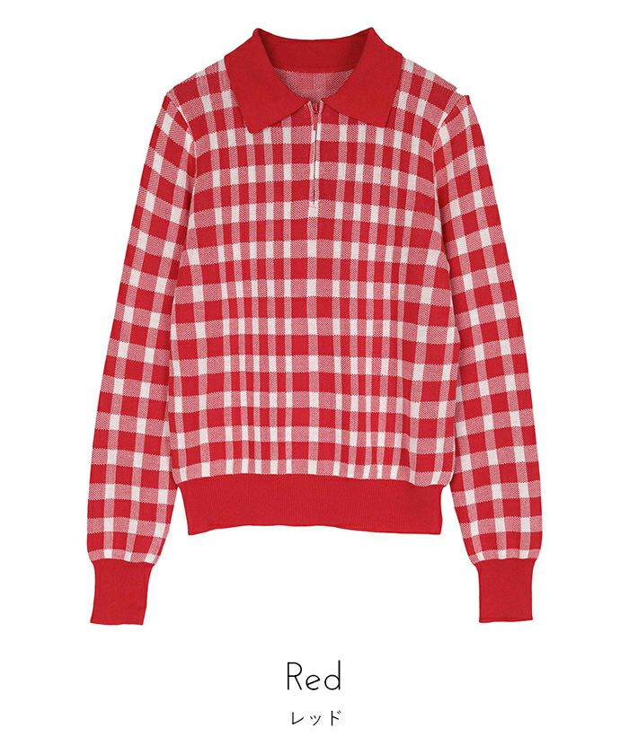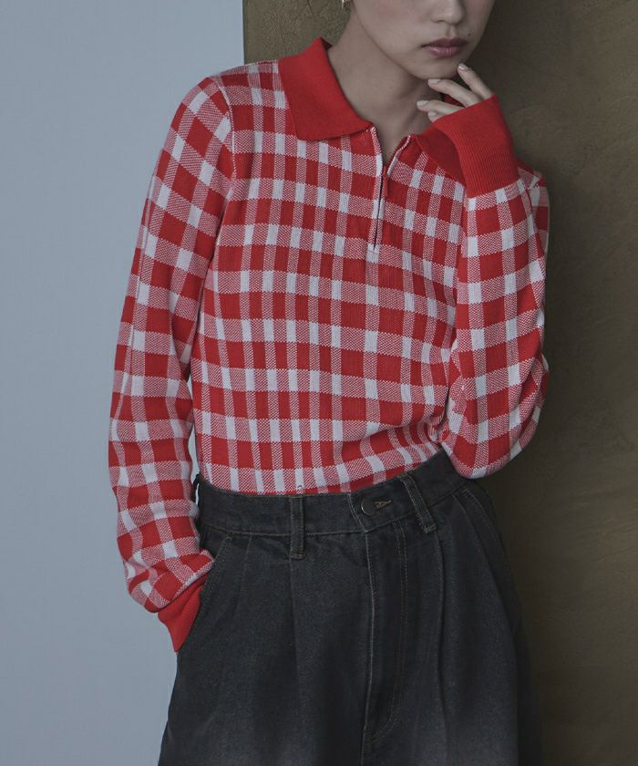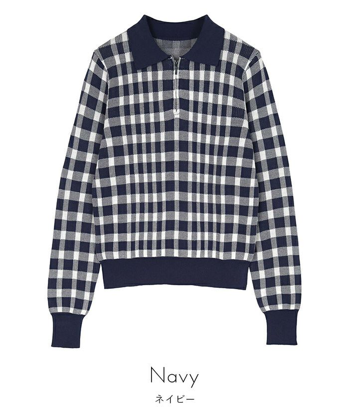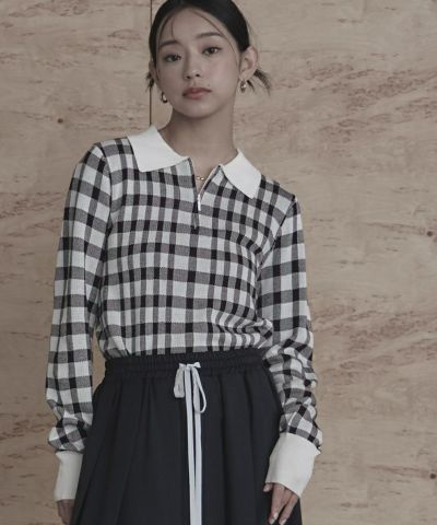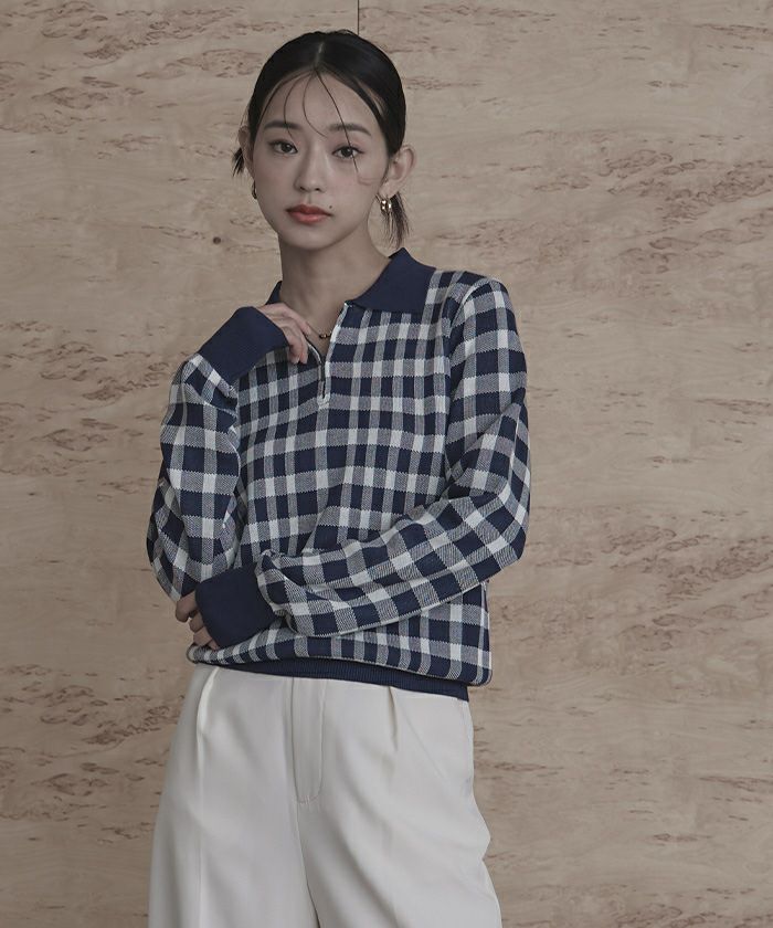 チェック柄フロントジップポロニット【miette ミエット】