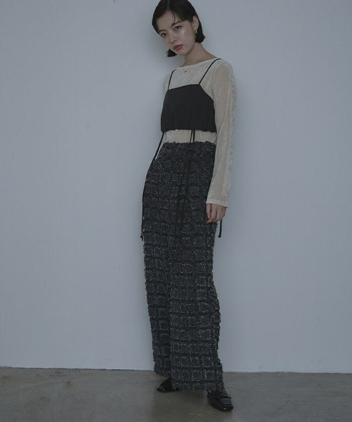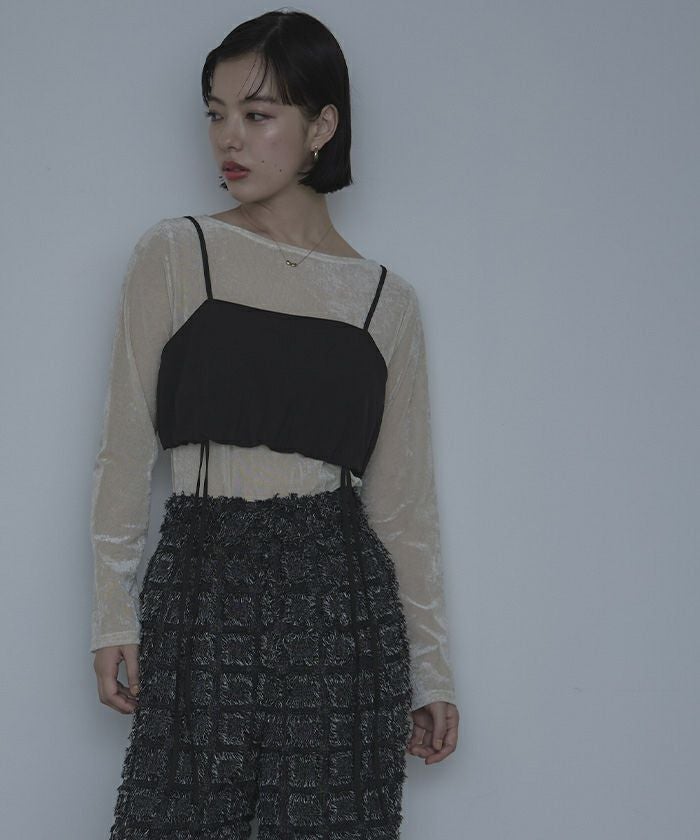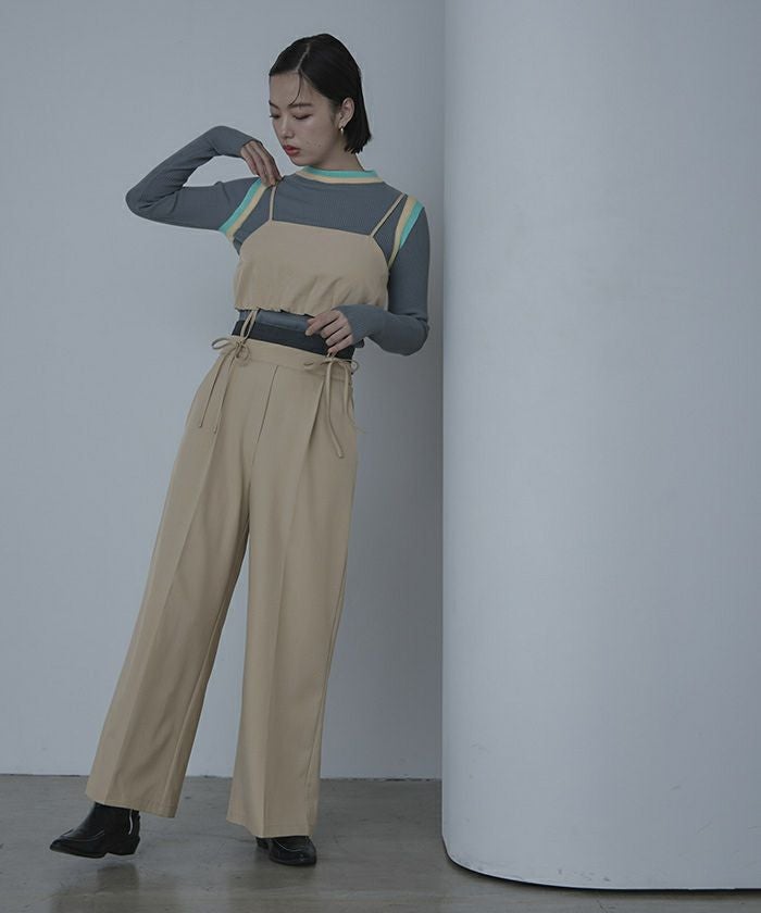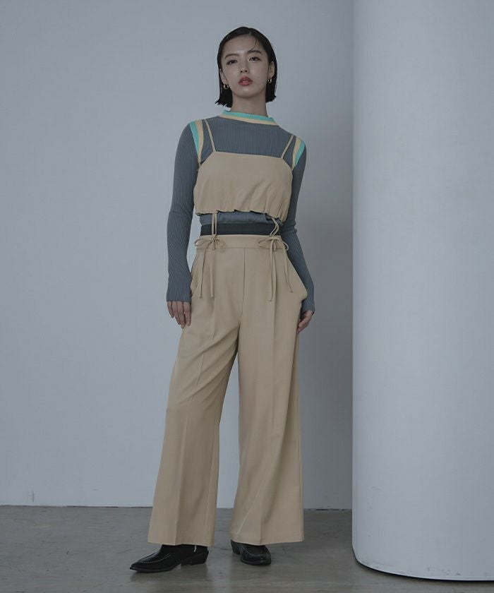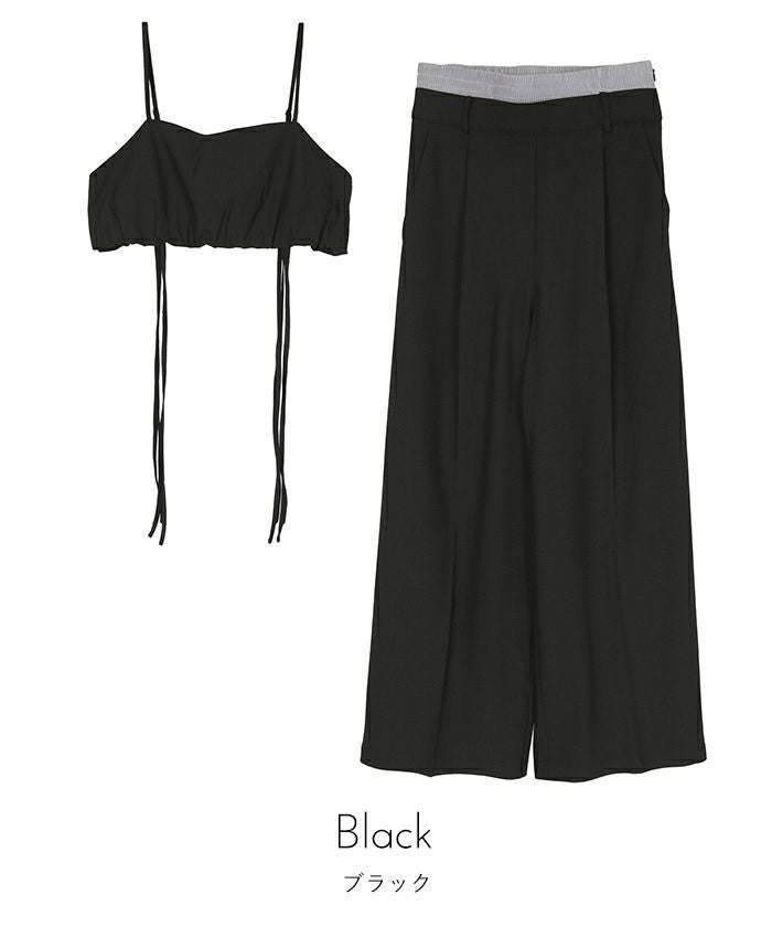 ・トレンド感のあるバルーンシルエットのビスチェと、ダブルウエストパンツのセットアップ