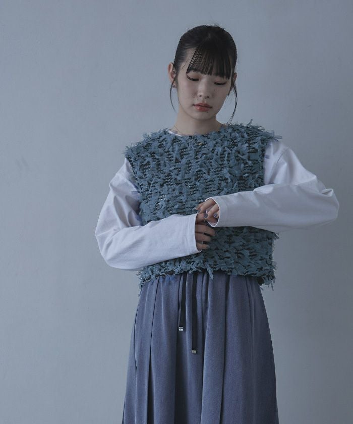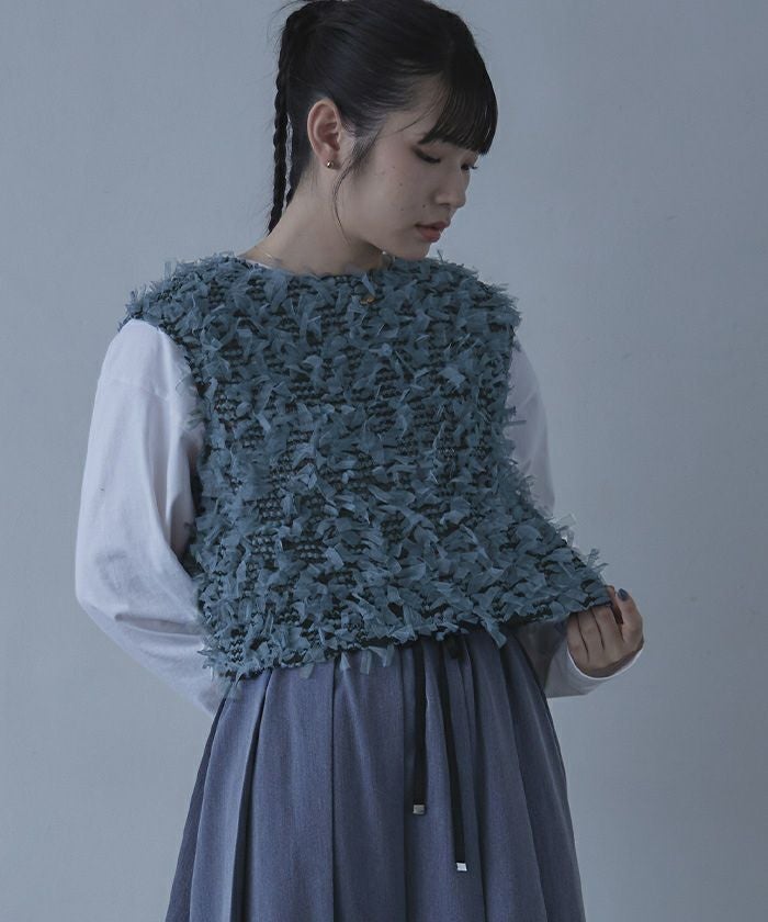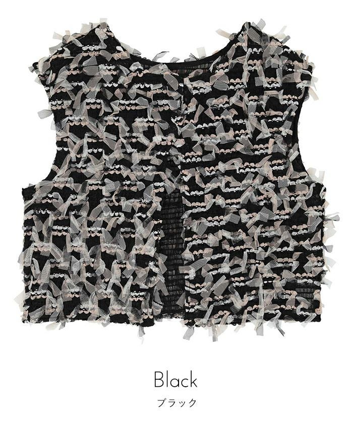 ・フリフリのチュールジャガード素材がアクセントのベスト