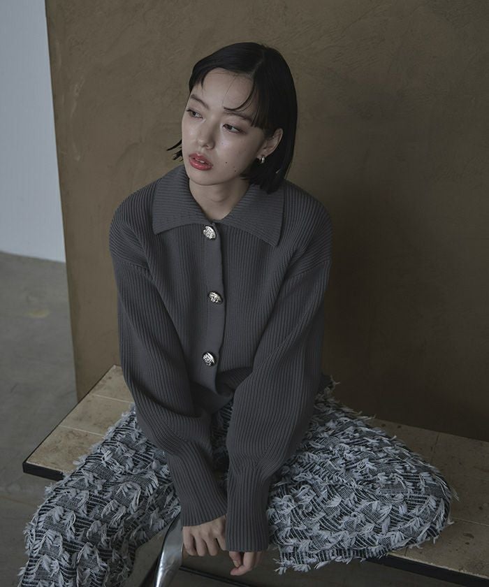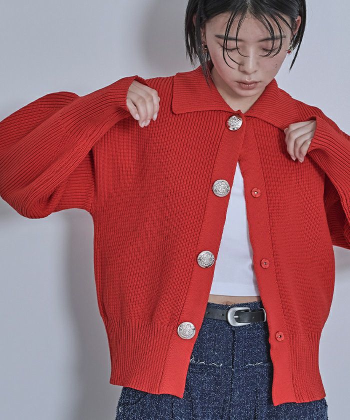 BIGボタン襟付きニットカーディガン【miette ミエット】