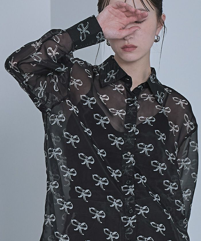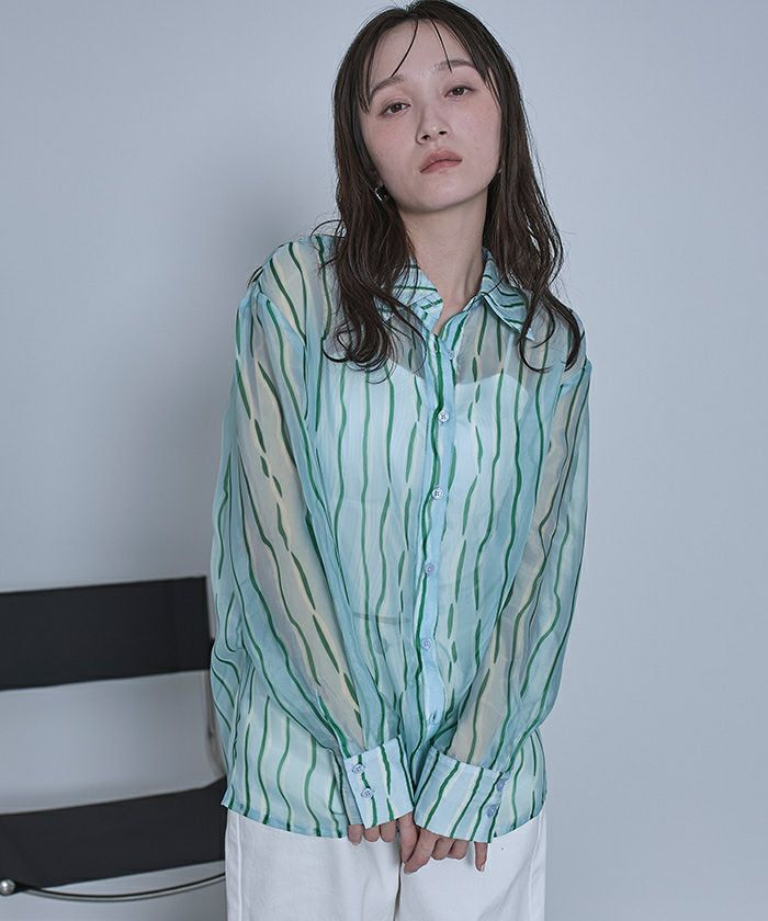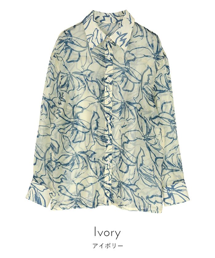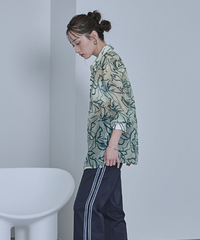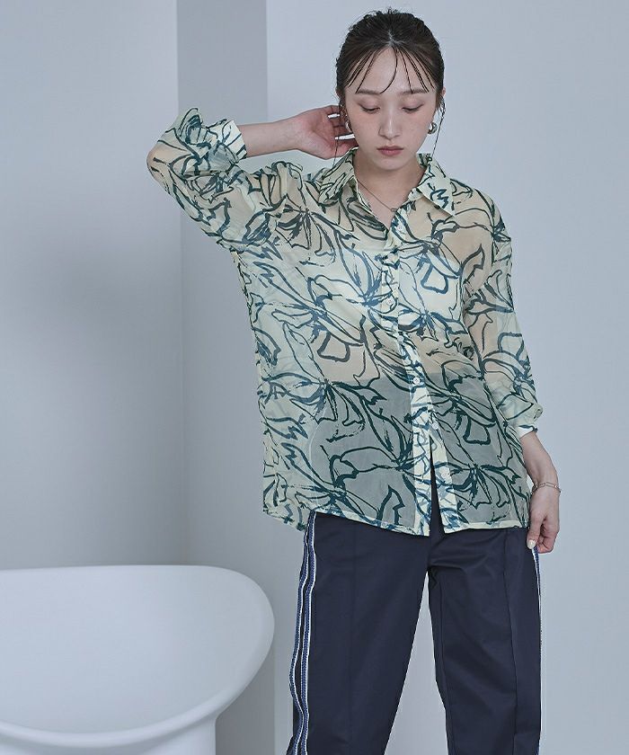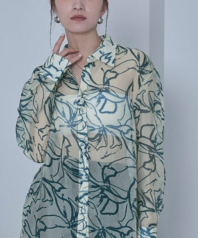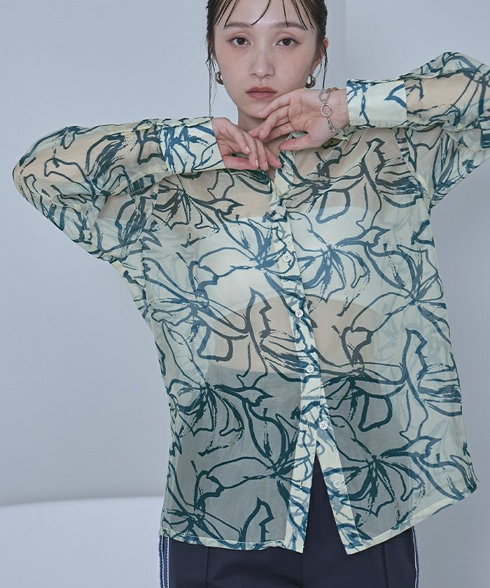 ・落ち感のあるオーガンジーにプリントを施したシアーシャツ