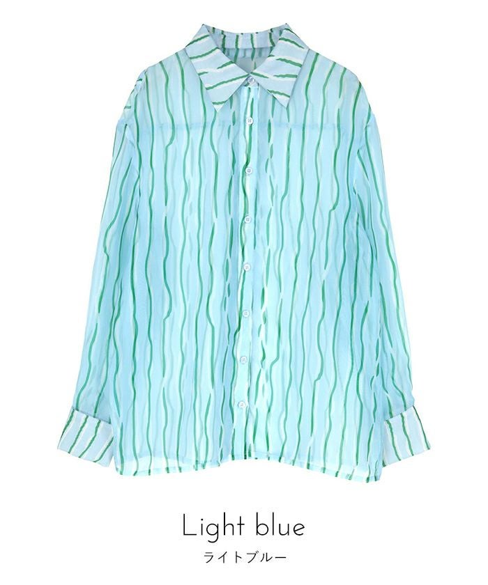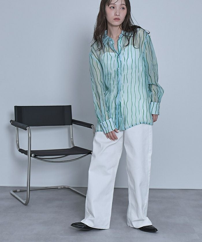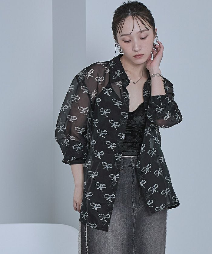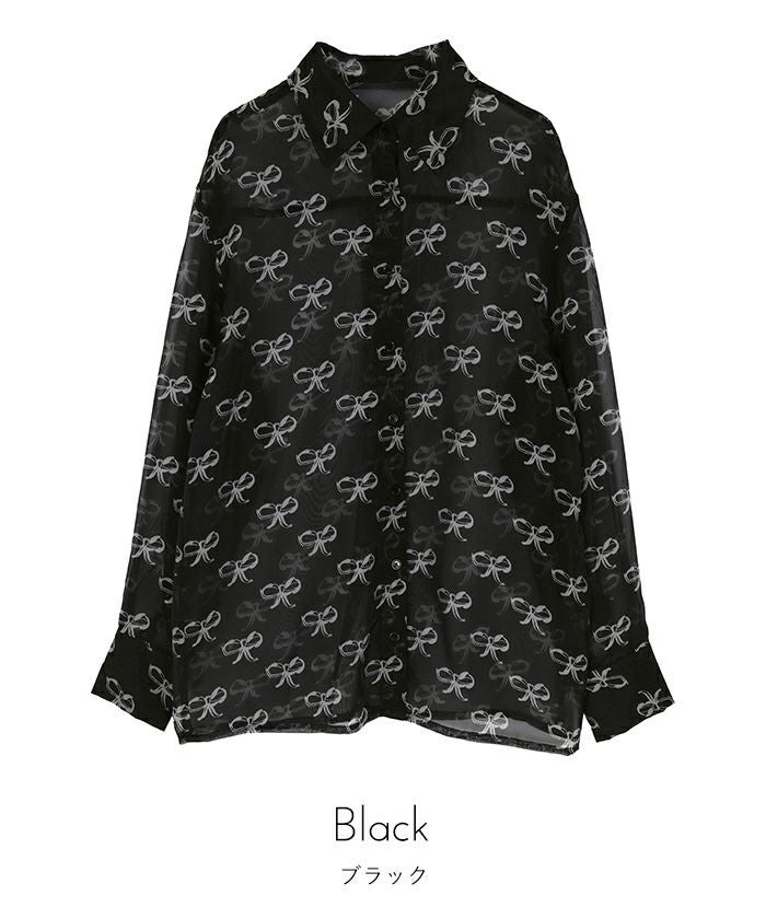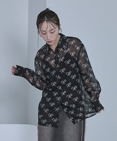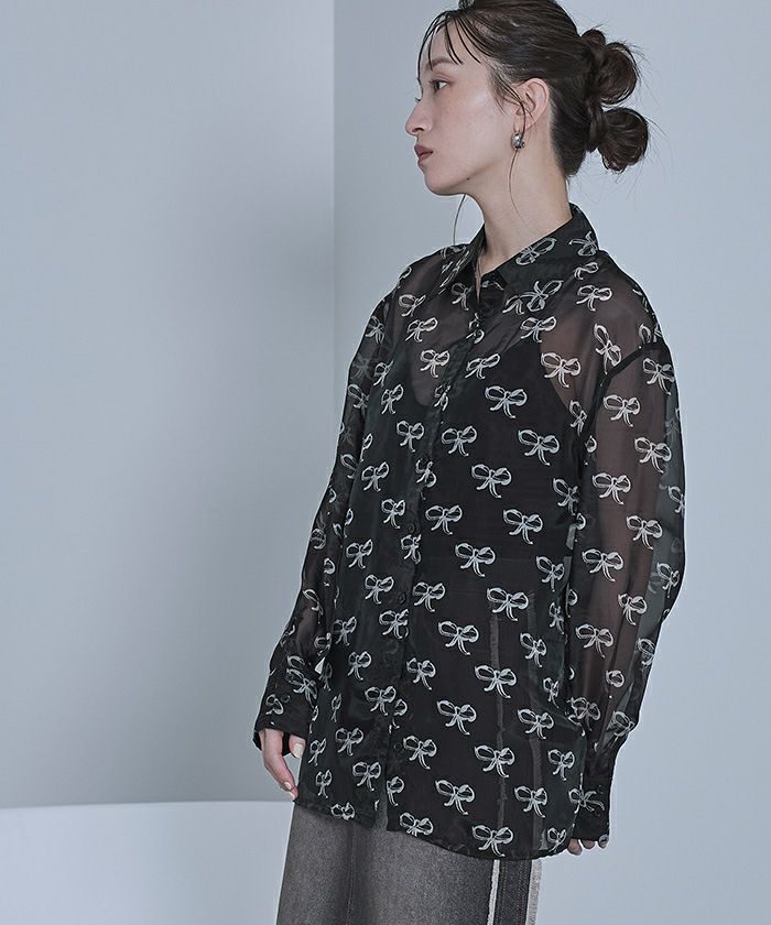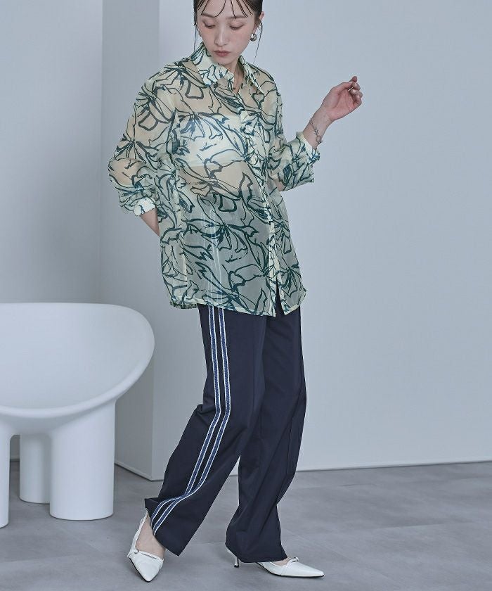 ・落ち感のあるオーガンジーにプリントを施したシアーシャツ