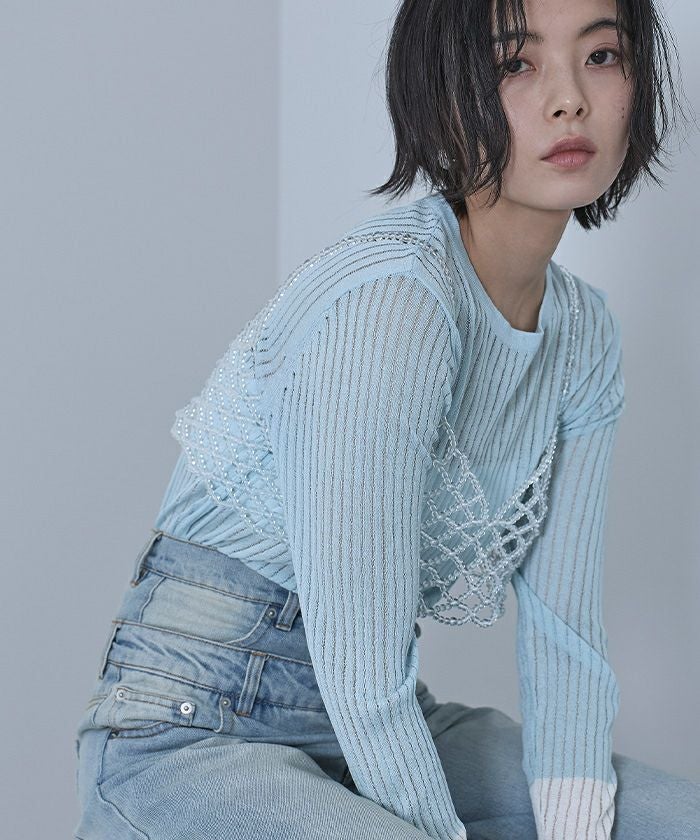 ・クリアで抜け感のあるビーズビスチェ