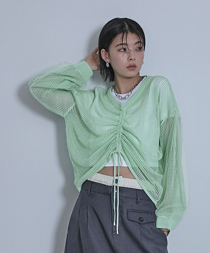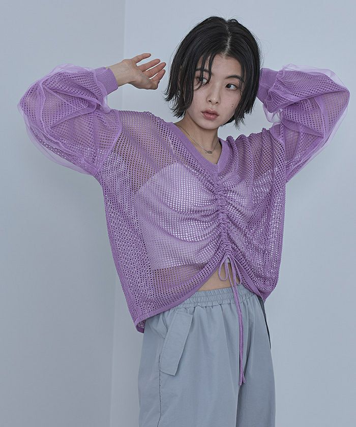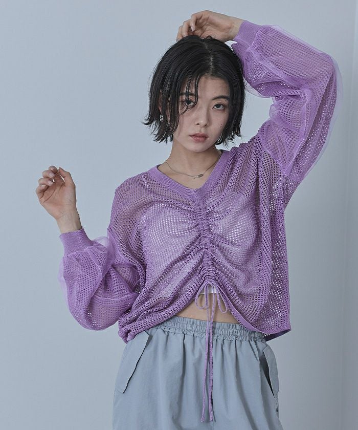 ドロストメッシュニットトップス【miette ミエット】