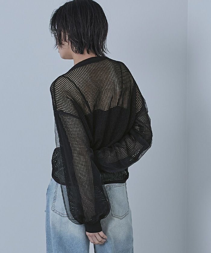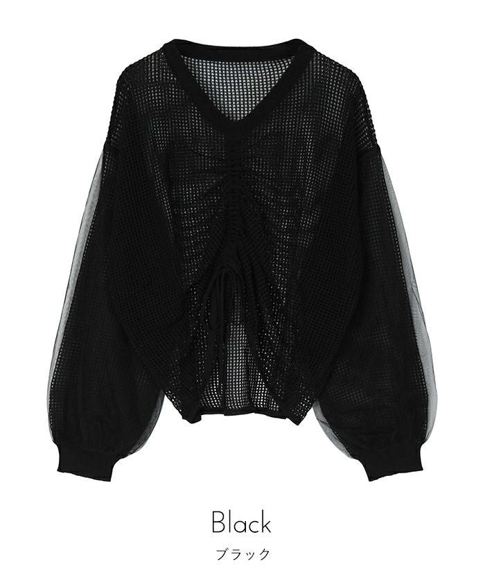 ・抜け感のある透かし編みに袖だけチュールをドッキングしたデザイン