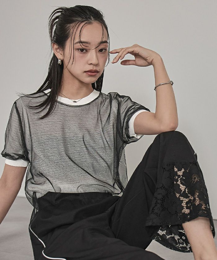 チュールレイヤードメッシュトップス【miette ミエット】