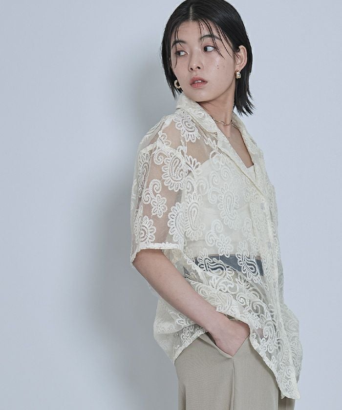 オープンカラーレースシャツ【miette ミエット】