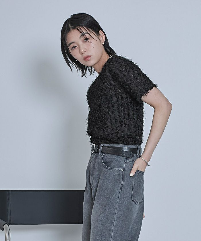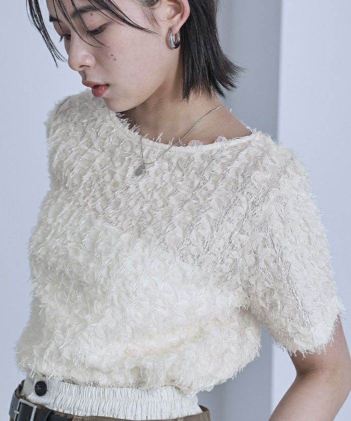 商品情報 ・チュールフリルフリンジの素材で1枚でおしゃれに決まるトップス