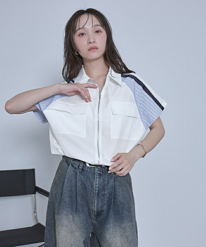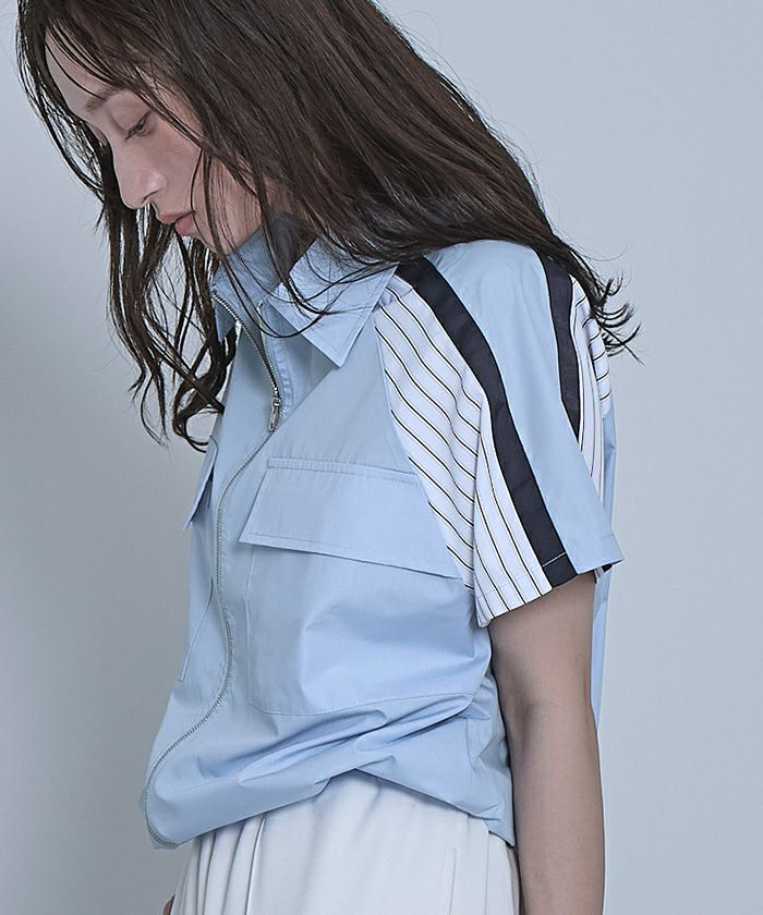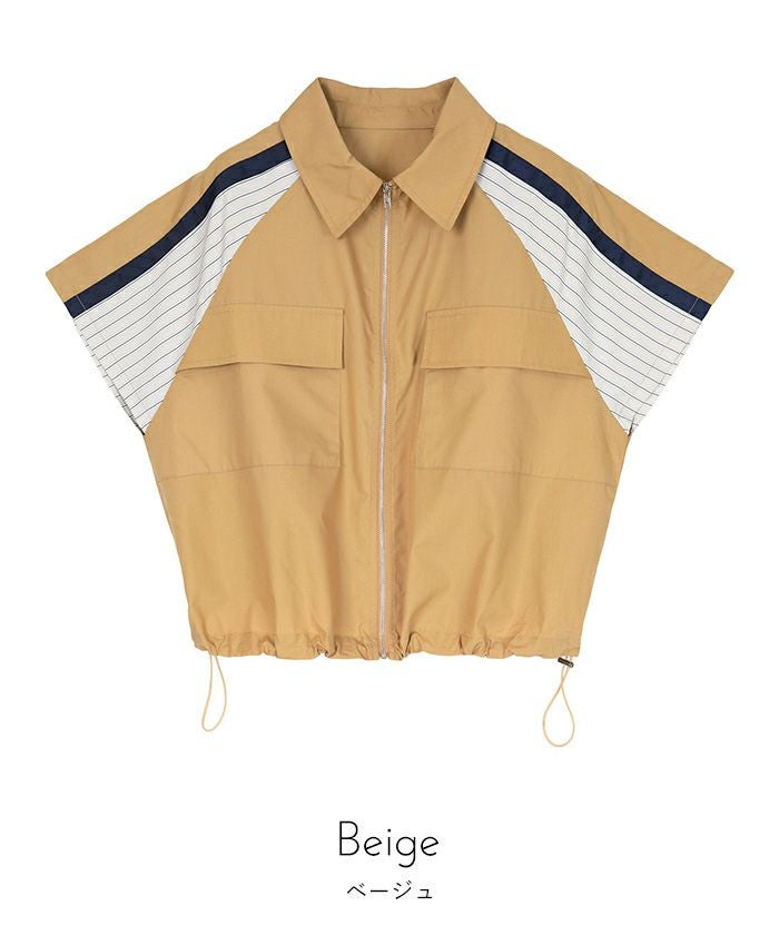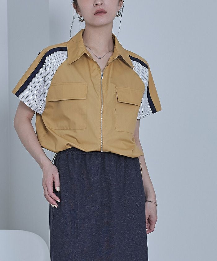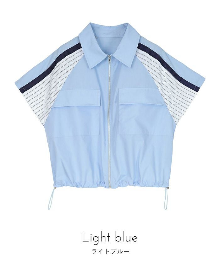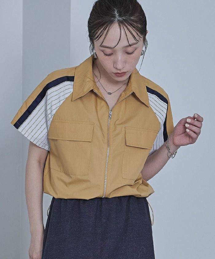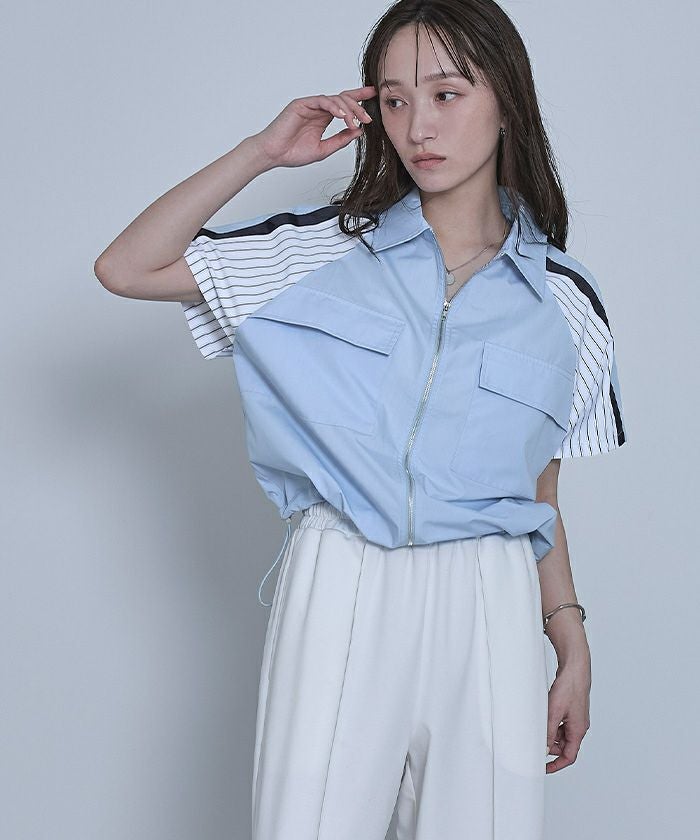 ストライプ切替ジップ半袖シャツ【miette ミエット】【メール便可/100】