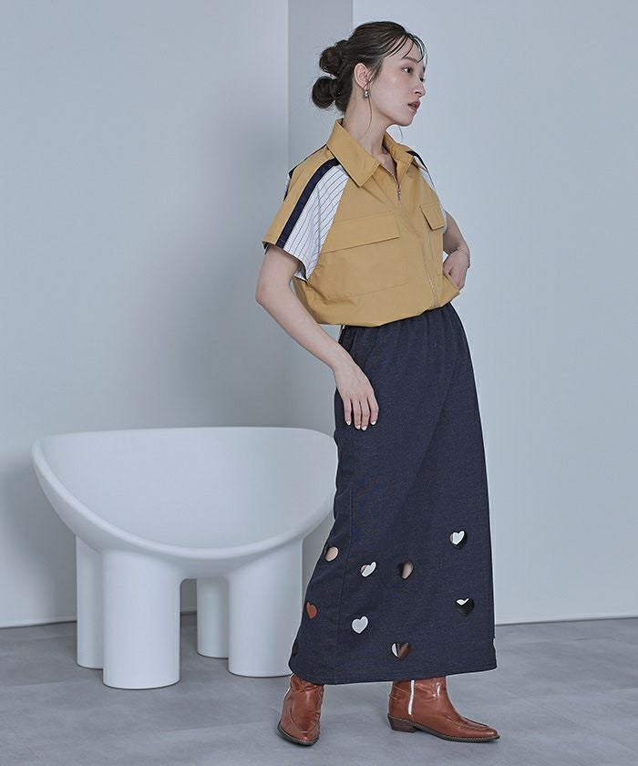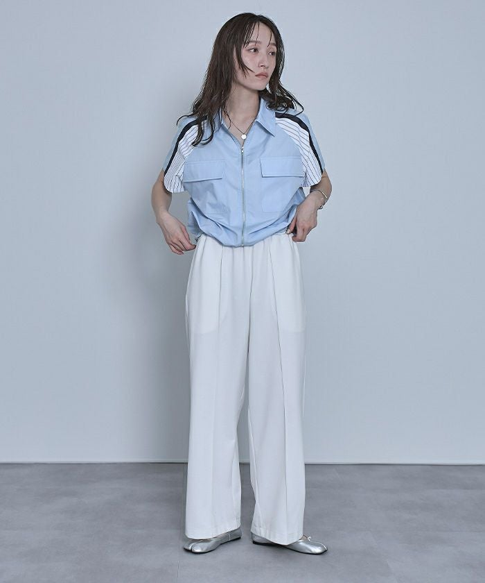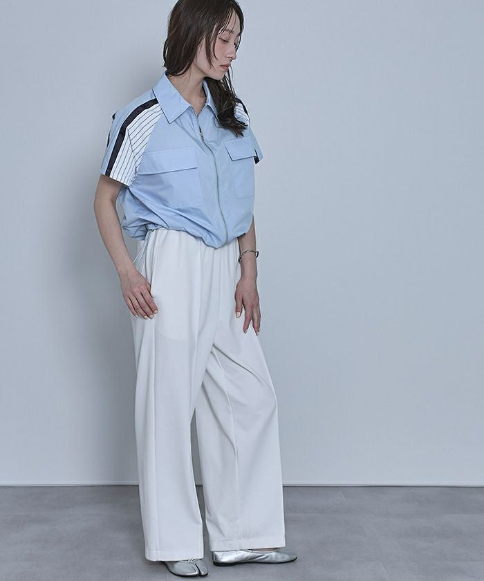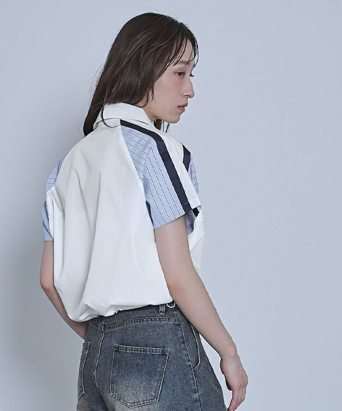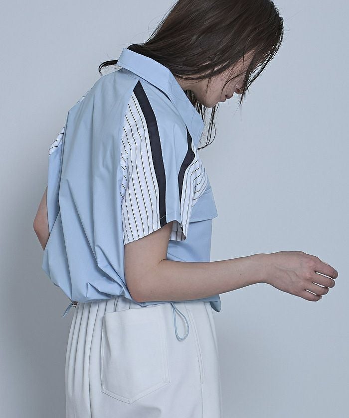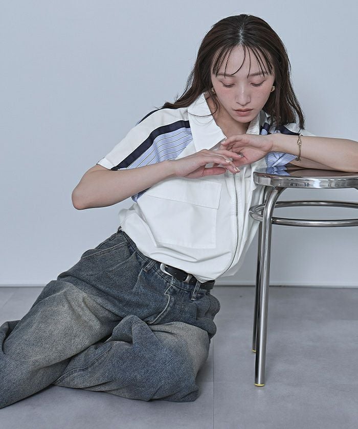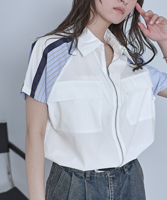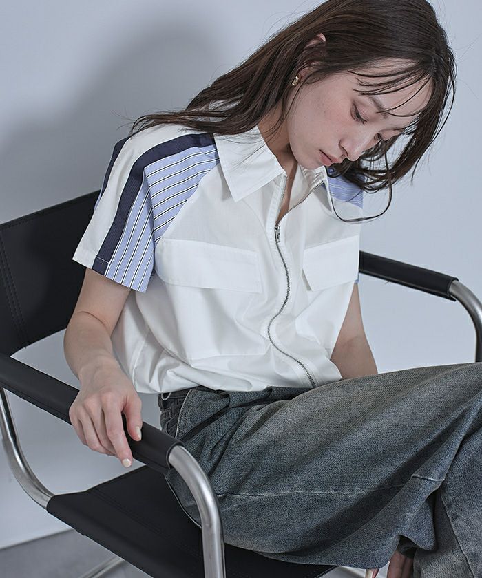 ストライプ切替ジップ半袖シャツ【miette ミエット】【メール便可/100】