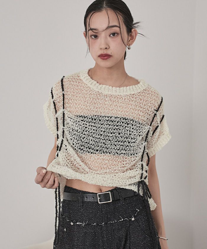 ・透かし編みのシアー感が大人っぽく、Tシャツやキャミソールなどとレイヤードコーデが楽しめるアイテム。