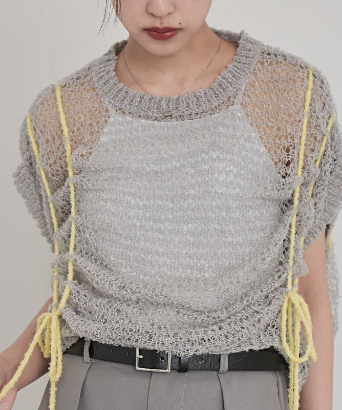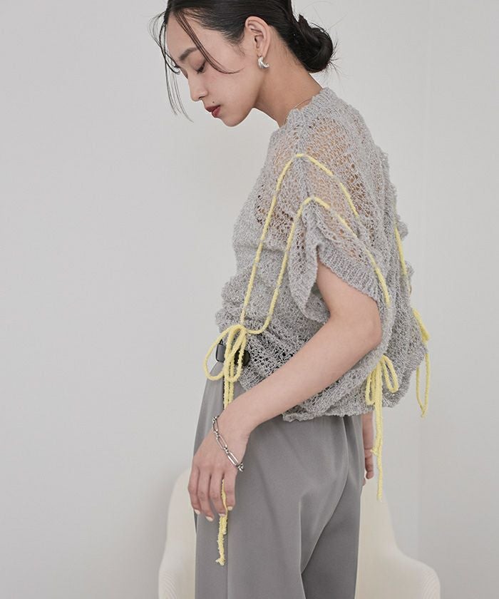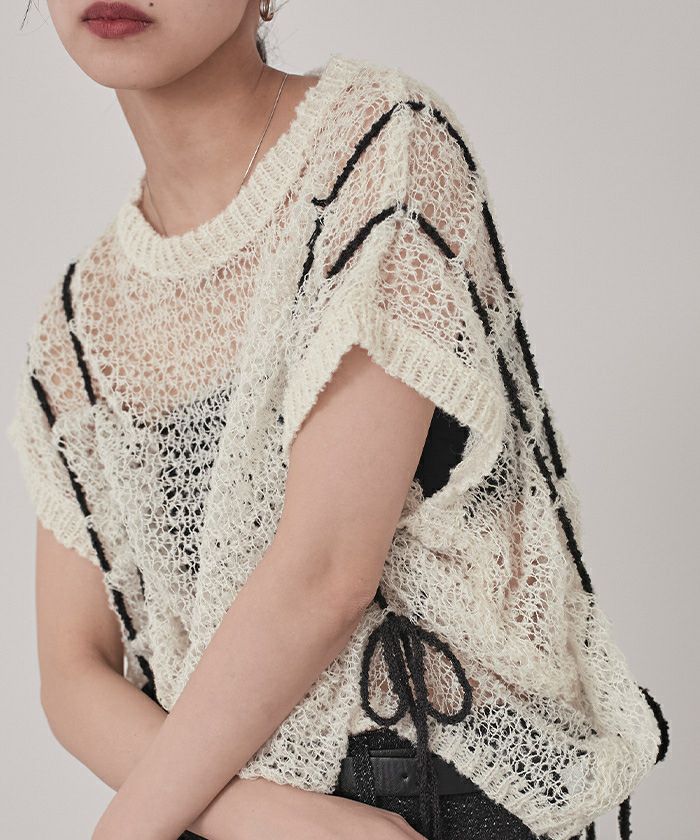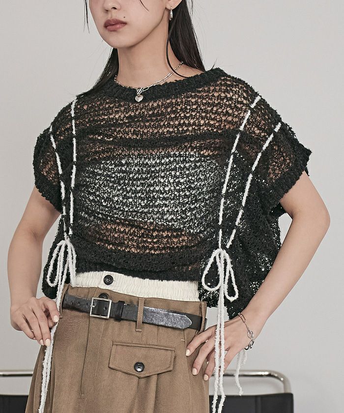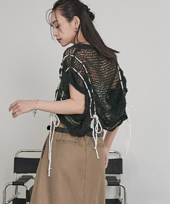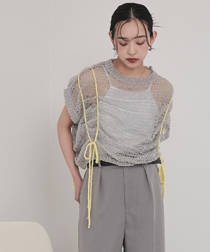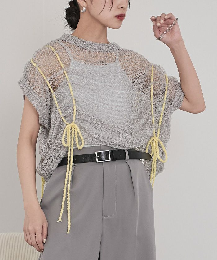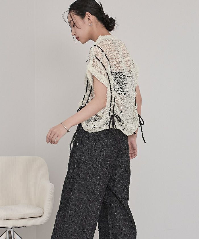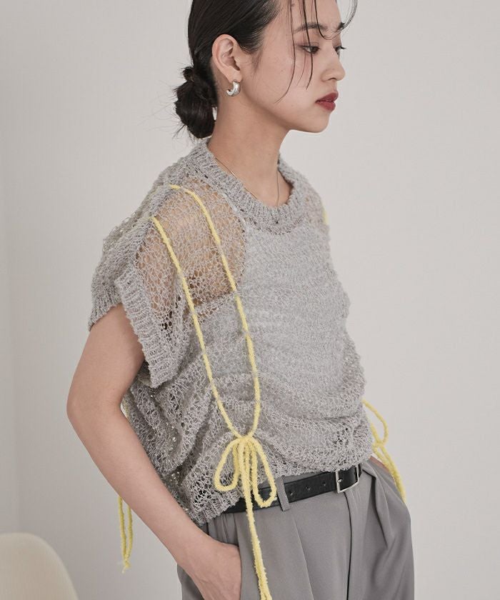 ドロストリボン透かし編みニットベスト【miette ミエット】